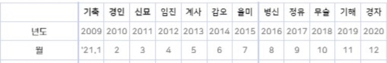 2021년 신축년은 신기하게도 지난 12년간의 60갑자가 각 달에 들어있다. 2009년과 올해 1월은 둘 다 기축년과 기축월이었고, 2021년과 내년 1월은 같은 신축년과 신축월이다. 올 한 해가 좋았든 별로였든 간에 아직 마음의 고삐를 늦출 때가 아니다. 신축년의 기운이 두 배로 들어올 신축월이 아직 남아있기 때문이다. 그러므로 이번 신축년의 피날레는 내년 1월이 될 수 있다. 양력으로 한 해가 간다고 해서 정말 올해가 간다고 여기면 안 되는 이유다.