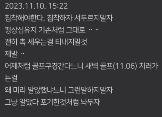 갈팡지팡 내마음이 내것이 아닌 상태의 나, 폰의 메모글집은 나에게 피난처 같은 곳이어야 했다. 하지만 우리 사이의 잦은 다툼은 그 평온함을 빼앗아갔다. 아이들이 부모의 갈등을 목격하는 것 자체가 그들에게 큰 상처가 되었고, 양육에도 부정적인 영향을 미쳤다.