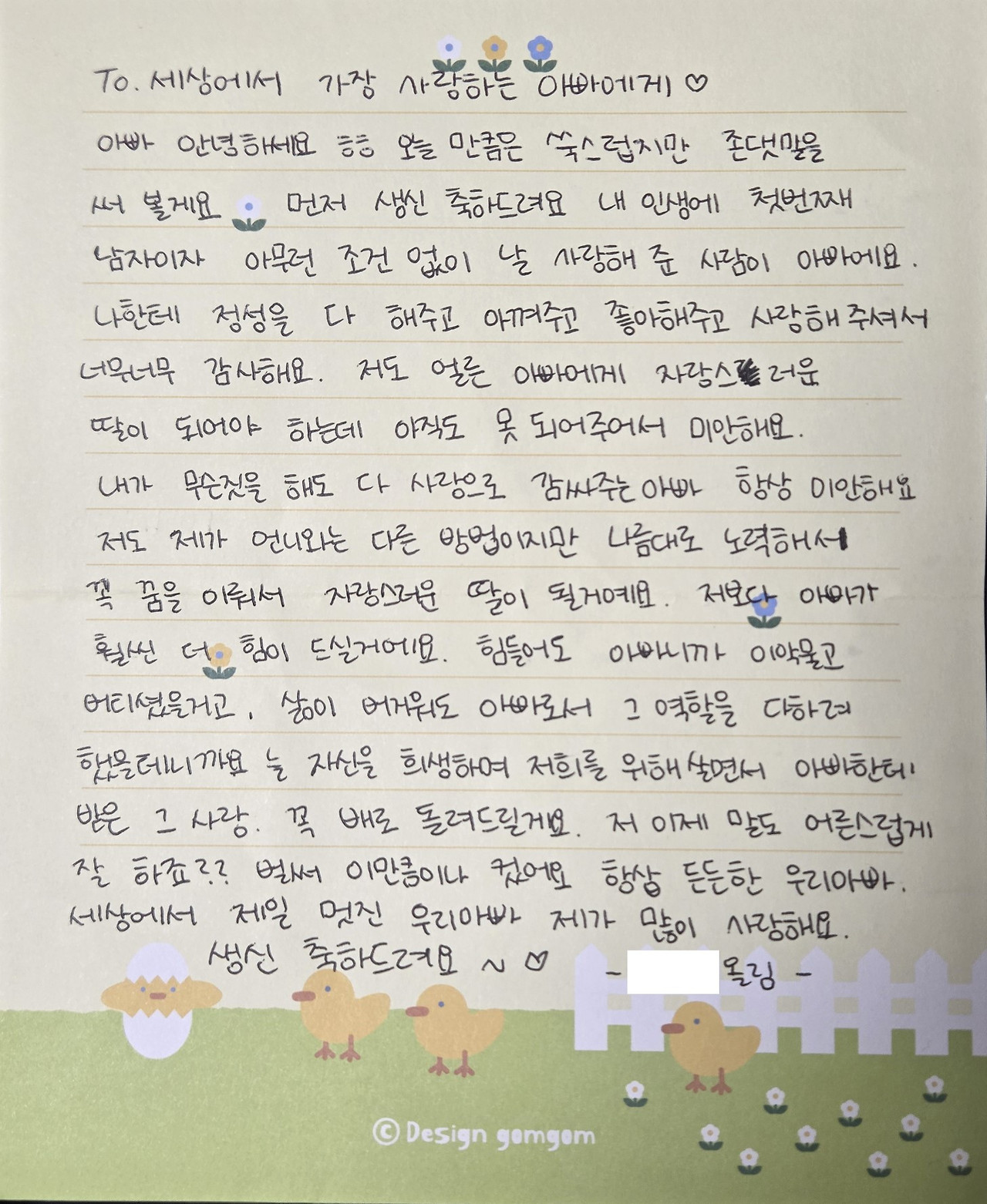 얼마 전, 딸2는 저에게 생일 편지를 써 주었습니다.