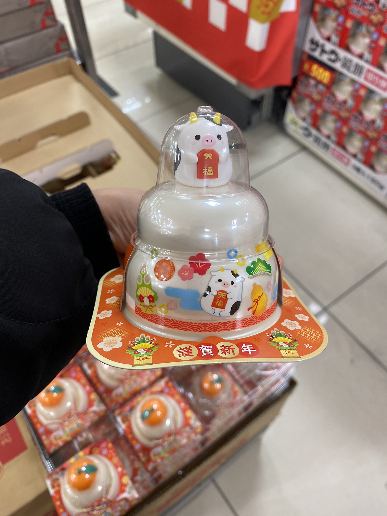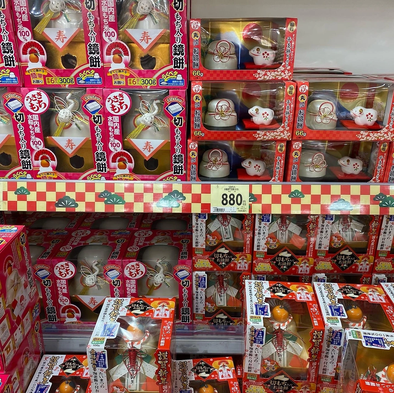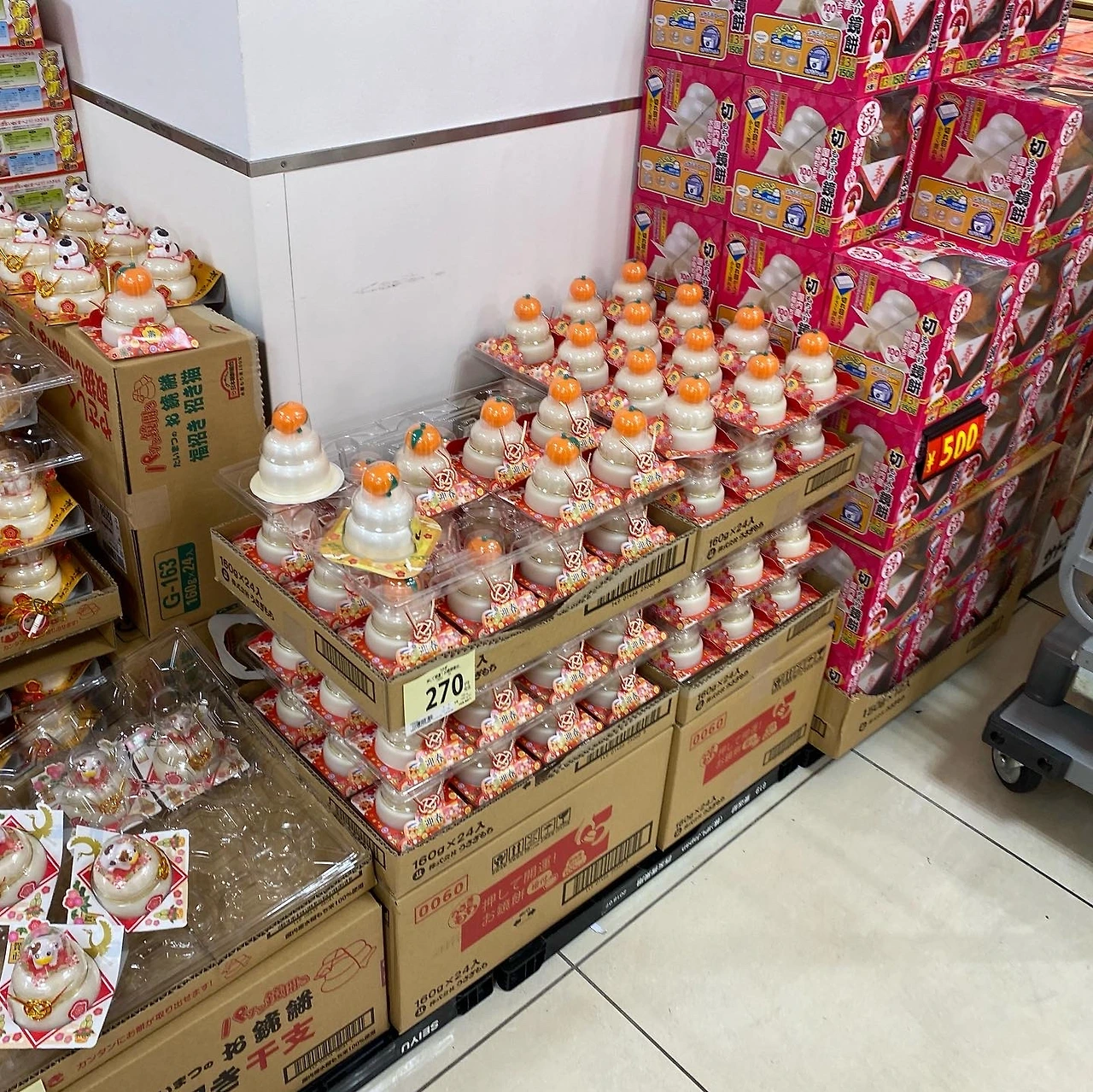 일본인 남자친구도 한번도 카가미모치를 사 본적이 없다고 한다.그래서 이번에 한 번 장식 해 보기로 해서 연말에 100엔샵이나 슈퍼마켓에 가보니 저렴한 카가미모치가 많이 판매중이었다. 나는 일본의 대형 슈퍼마켓인 ‘세이유’라는곳에서 구매했다.