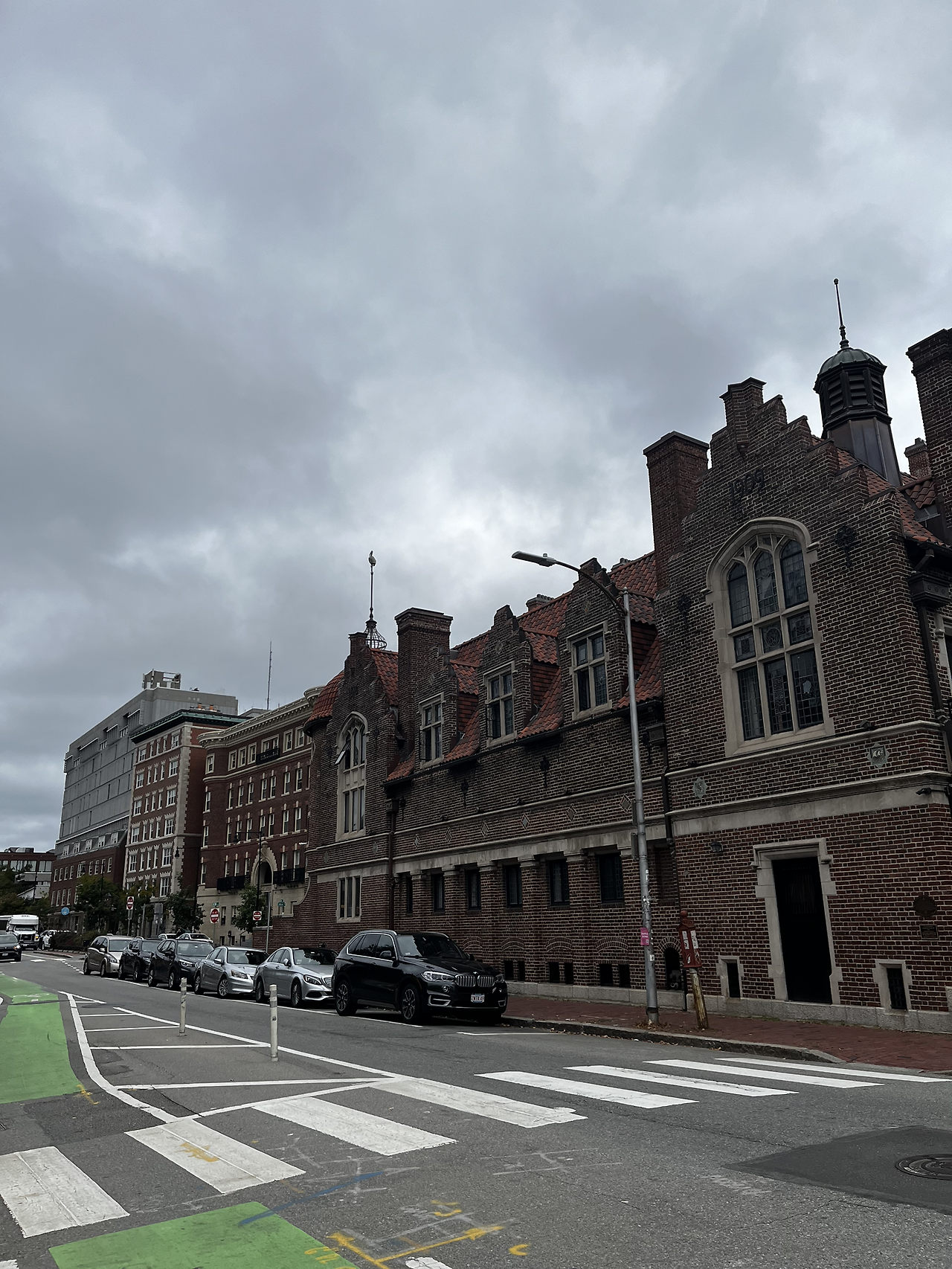 보스턴에 도착한 둘째 날 또한 주말이라 오전부터 자전거를 타고 여유롭게 학생들이 없어 한산한 Harvard의 캠퍼스로 향했다. 하버드 건물들의 특징 중 하나는, 오랜 역사와 전통을 중시하는 학교의 학풍과 답게 예전부터 추구하던 문화를 계속 이어나간다는 것이었다. 예를 들면 하버드의 대부분의 건물들이 붉은 벽돌(Crimson색이라고 부른다고 한다, 어쩌면 한국의 60년대 지어진 벽돌집 같기도 하다)로 이루어져 있다는 것이다. 그래서인지 하버드 대학교 캠퍼스 근처로 가다 보면 어느 구간부터 하버드 대학교 영역인지 뚜렷하게 구분이 가능했다.