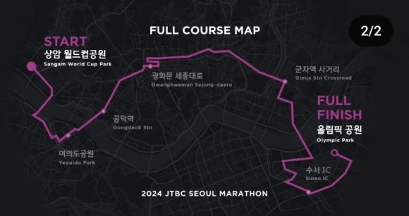 그날 달리기 코스는 이랬다. 서울의 서쪽에서 동쪽까지 완전히 가로지는 코스였다. 한강 다리를 3번 건넜다.