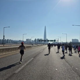 3번째 다리인 잠실대교를 건너는데 바람을 그대로 맞으며 잠실대교 다리가 참 길다.. 이 다리 진짜 기네.. 생각했다. 불과 2일 전인데도 생각이 잘 안날만큼 아득했다. 생각할 힘도 없어서 그냥 뛰었는데 페이스 메이커 해주는 언니가 자꾸 시계를 본다. 이 속도로 가다간 목표를 달성하지 못할 각인 것 같았다. 언니는 웃으며 힘내자라고 말했지만 나는 더이상 힘을 낼 수 있을까? 이렇게 1시간을 더 달릴 수 있을까 싶었다. 그때 언니의 아는 지인이 나를 앞질러가며 말했다. “화이팅! 오늘 달성 못하면 다음에도 또 이렇게 힘들게 30키로 뛰어야 돼요!! 오늘 끝내는게 낫잖아~” 라고 말이다.