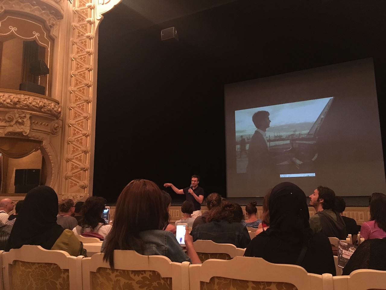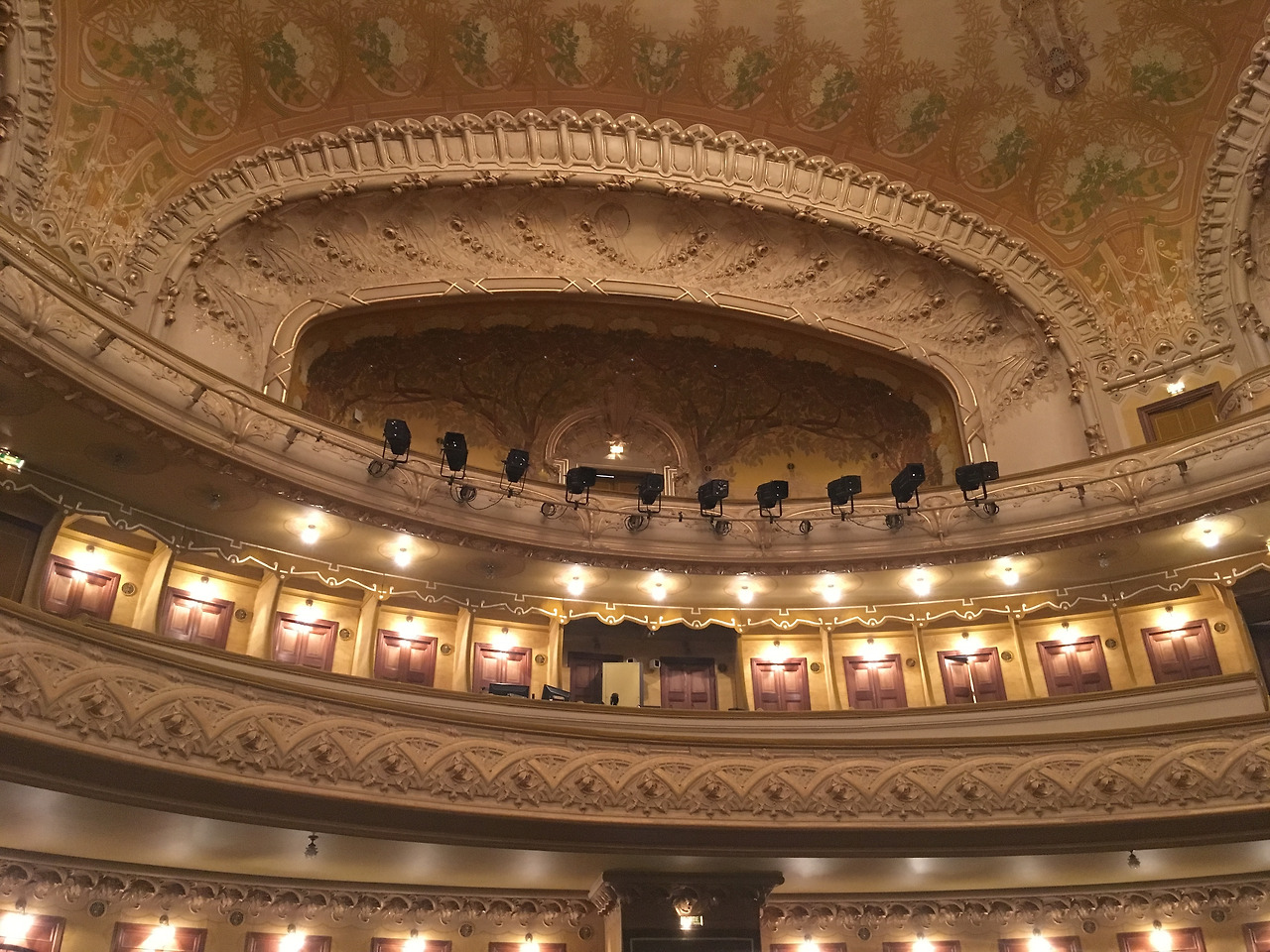 1900년대 초반 당대 최고 인기였던 아르누보 스타일 건물의 외벽 조각 장식들만 보다가 노란 조명에 황금빛으로 가득한 내부 공간으로 들어섰다. 온 바닥에 깔린 카펫의 푹신함, 화려한 천장 장식이며 섬세한 조각상들까지 아름답기 그지없었다. 준공된 지 100년은 넘은 공간이었지만 여전히 장대함을 느낄 수 있었다. 어린이들 견학처럼 한 줄로 서서 떼 지어 관람할 수밖에 없었지만 그때 여기서 꼭 공연을 보겠노라 다짐하는 계기가 되었다.