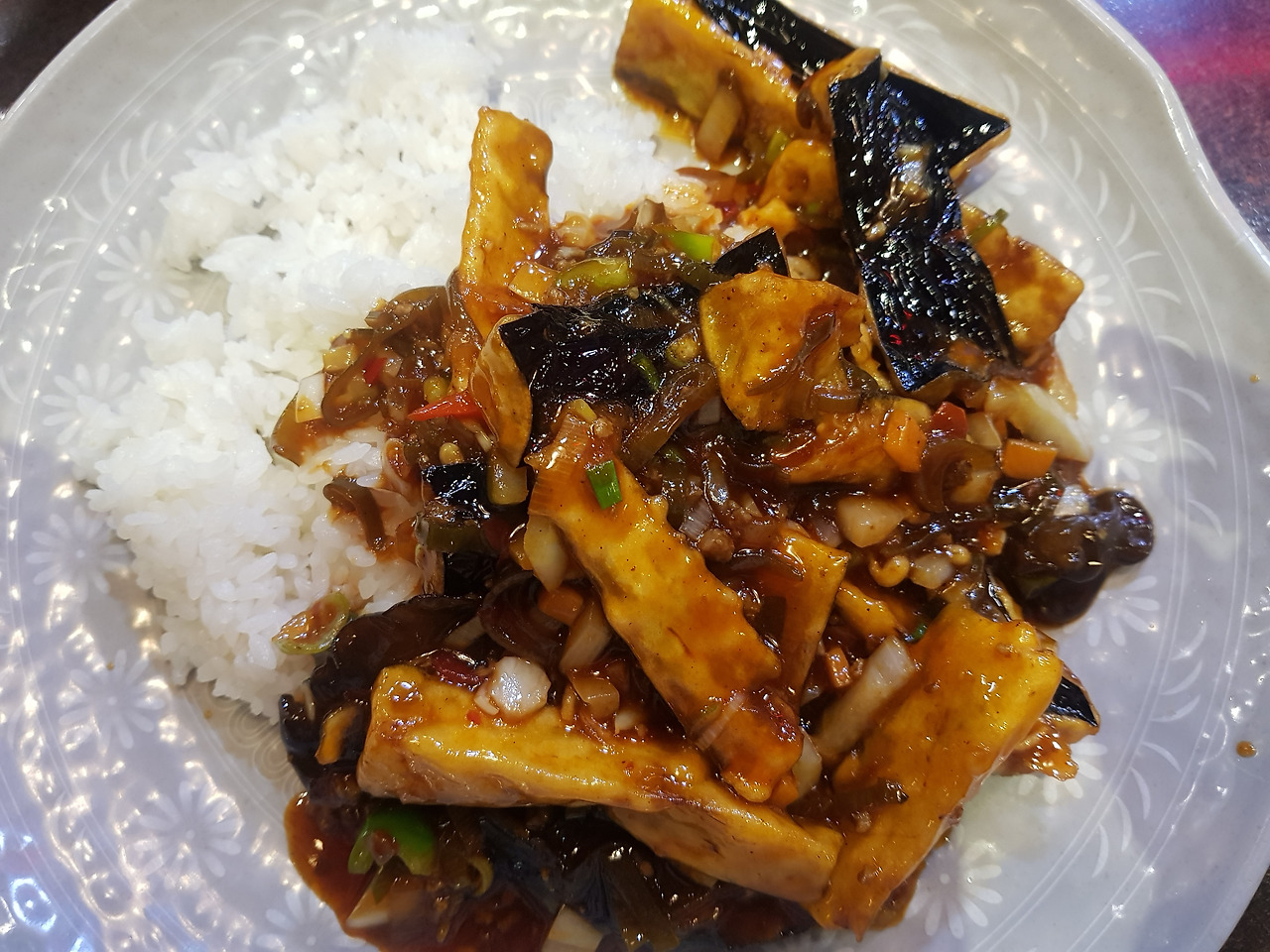 근무 마지막 날, 롤모델 공무직 동료를 포함해 친하게 지냈던 사람들과 같이 점심을 먹었다. 내게 공무직으로서의 마지막 점심식사 메뉴를 고를 수 있는 특권이 주어졌다. 당연히 인생 최고의 맛집인 돈가스 가게를 가려고 했지만 하필 그날 점심시간이 조금 촉박했던 터라 회사에서 가까운 가게로 가야 했다. 식사장소를 고르기 위해 밤하늘보다 별이 많은 지도앱을 살펴보다가 롤모델 동료가 소개해줬던 중식당이 보였다. 가지튀김을 썩 좋아하지 않던 내가 롤모델 동료의 강요에 가까운 추천에 못 이겨 처음으로 가지 덮밥을 먹었던 곳이었다. 경험 삼아 먹어보려던 거였는데 막상 먹고 나서는 나의 최애 중식 메뉴가 되었다. 이곳이라면 점심 메이트들 모두 불호 없이 다 좋아할 거라고 확신했다.