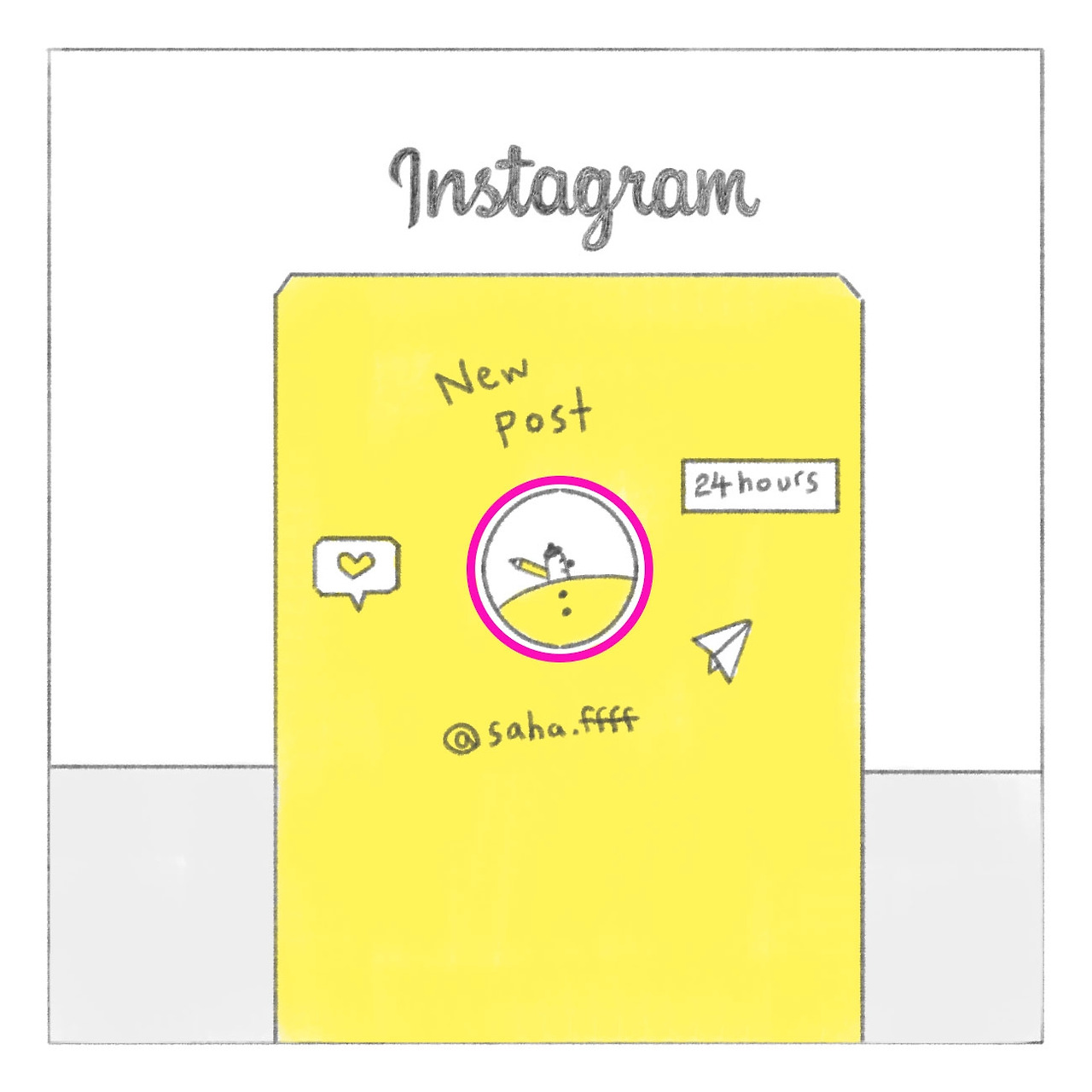 인스타그램에는 '스토리'라는 독특한 형식의 게시물이 있다. 무언가를 '스토리'에 올리면 24시간만 유효하고 그 후엔 사라진다. 스토리를 올린 사람의 프로필사진 테두리엔 인스타 핑크 컬러가 빛이 나고, 프로필사진을 누르면 게시된 스토리를 볼 수 있다.