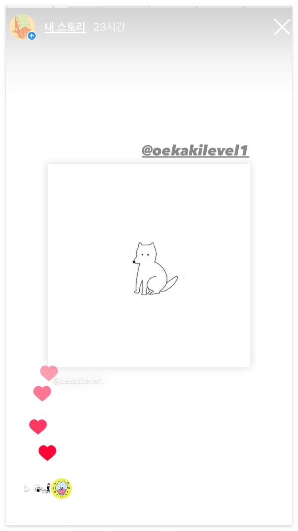 딱 두 번 해봤는데 하나는 '눈사람 그리기'였고, 다른 하나는 (확실하진 않지만 아마도) '화난 고양이 그리기'였다. 귀찮아서 패스하는 경우도 많지만, 스토리의 그림 그리기 기능으로 몇 초 만에 가볍게 그리는 거라 부담 없이 재미로 해볼 수 있다.