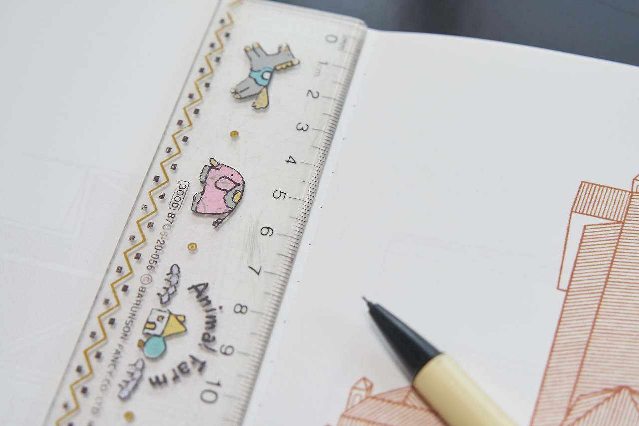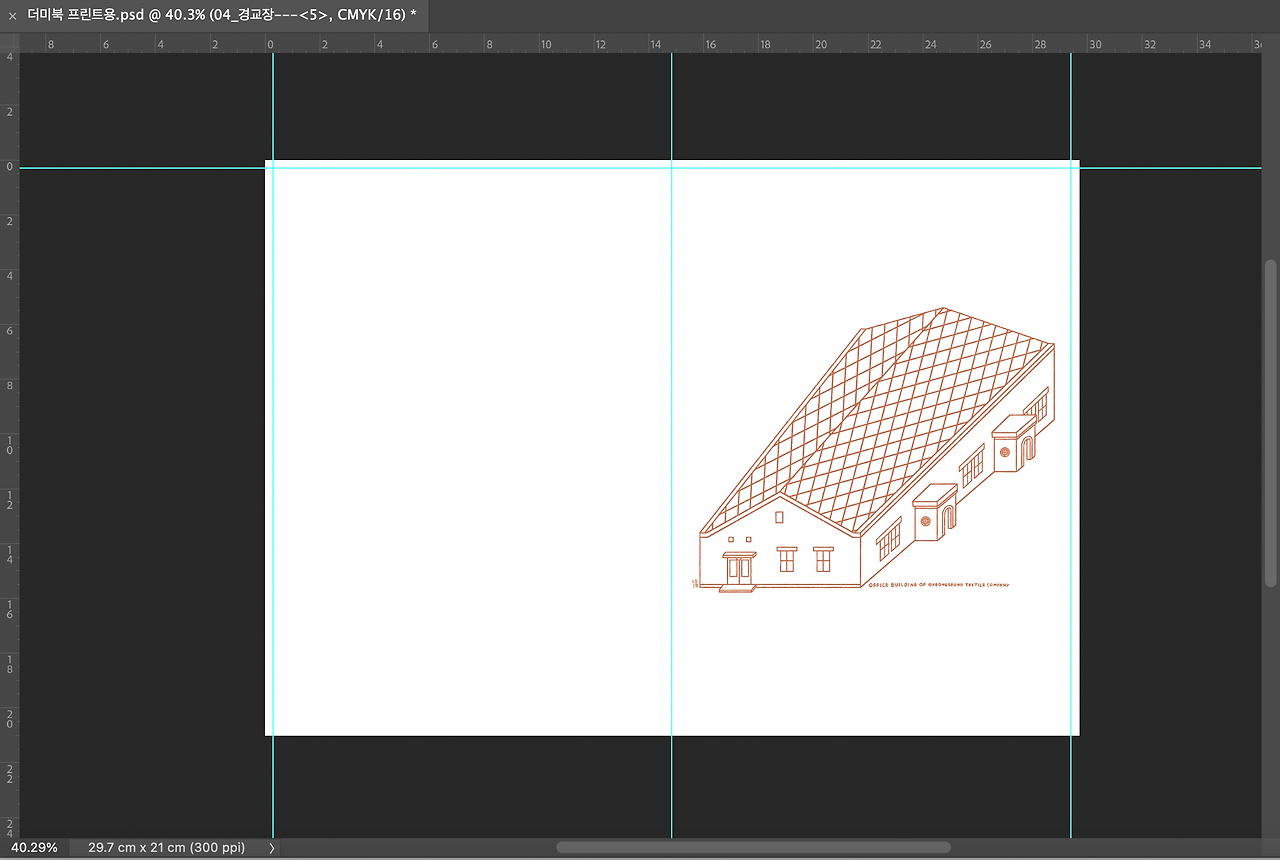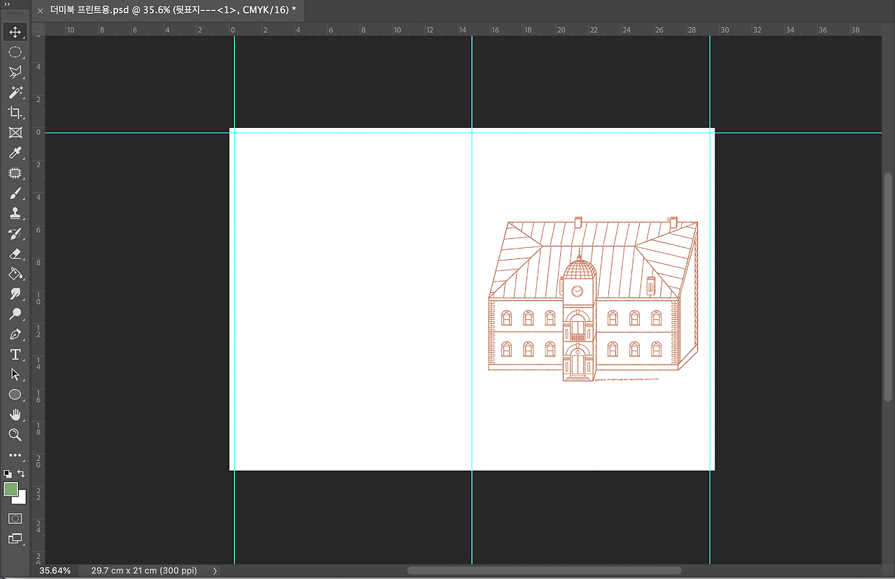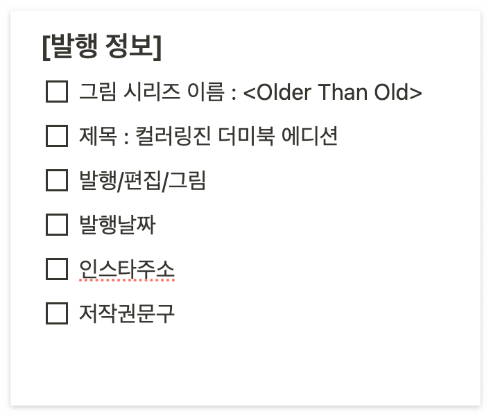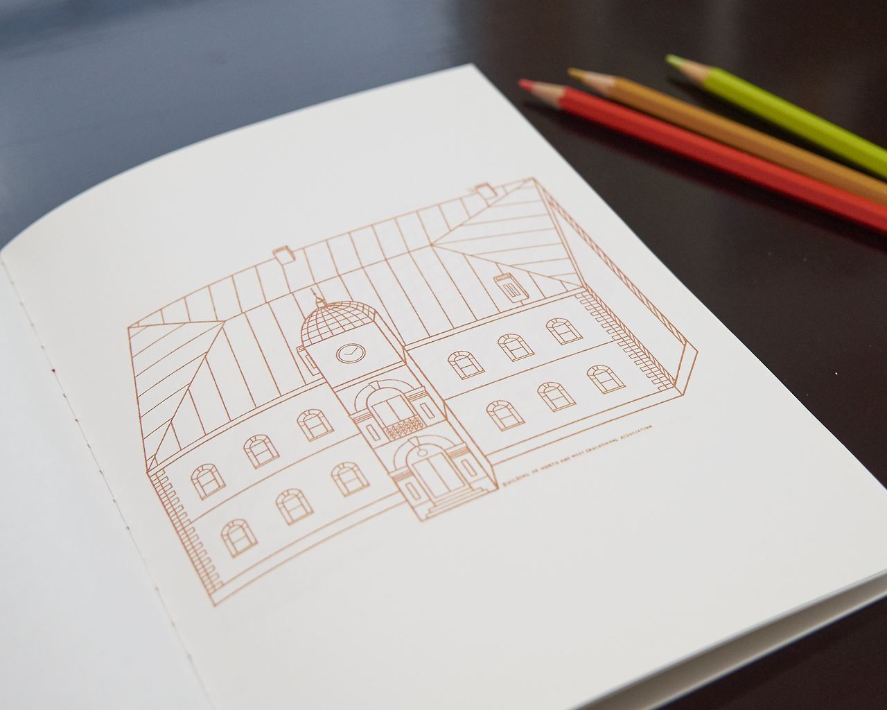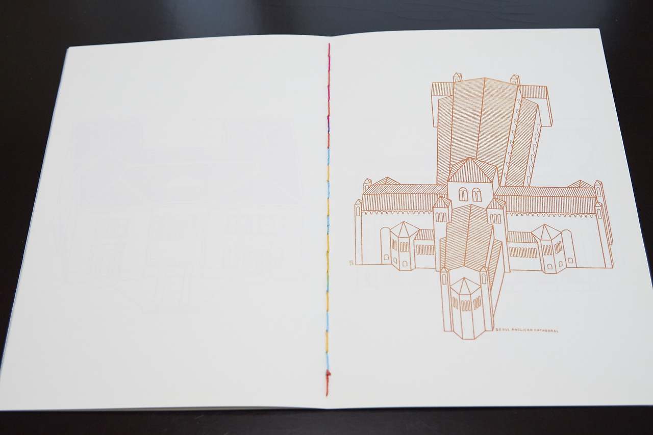 컬러링북의 사이즈, 페이지, 도안종류, 기타 정보, 종이 등을 정하는 작업이 필요하다. 나는 직접 그린 근대건축물 시리즈 <Older Than Old> 중 7개의 도안을 선택했다. 사이즈는 A4를 반 접은 A5 판형으로, 종이는 미색 용지로 계획했고, 발행정보도 깨알같이 넣어주기로 했다.