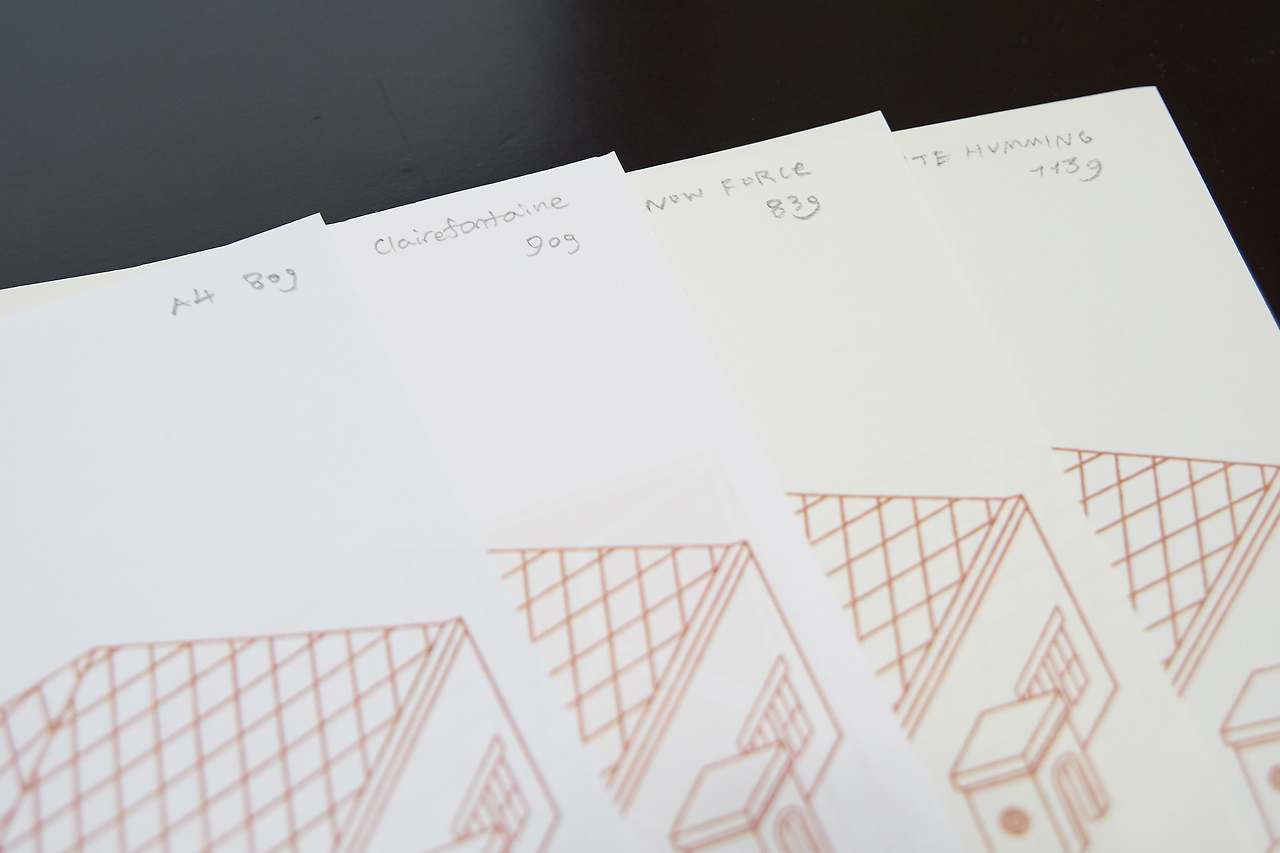 참고로, 종이는 보통 평량(gsm)이 높을수록 두꺼운데 우리가 일상에서 사용하는 A4 복사용지는 대체로 80gsm 이다. 종이가 두꺼울수록 고급스러운 느낌을 주지만, 페이지수가 많아지면 중철제본은 어려워진다.