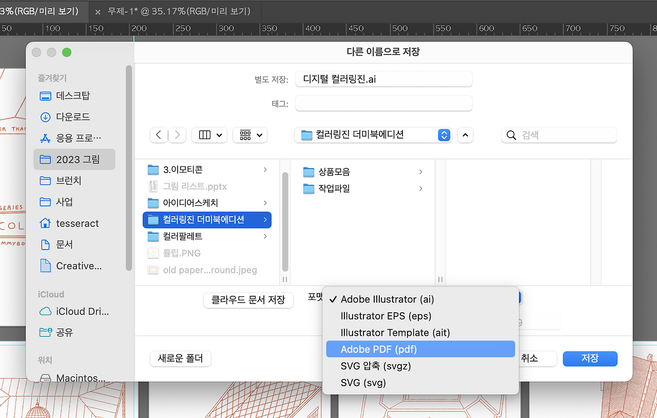 대망의 PDF 저장 단계다. 이제 곧 디지털 컬러링북 완성이다.