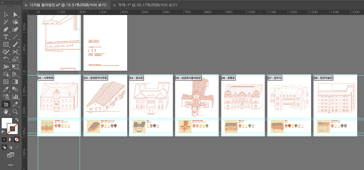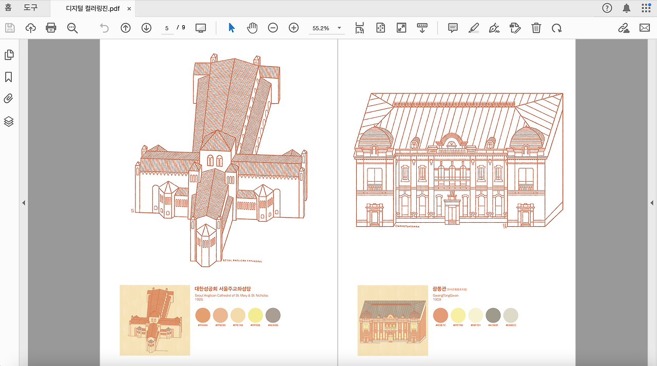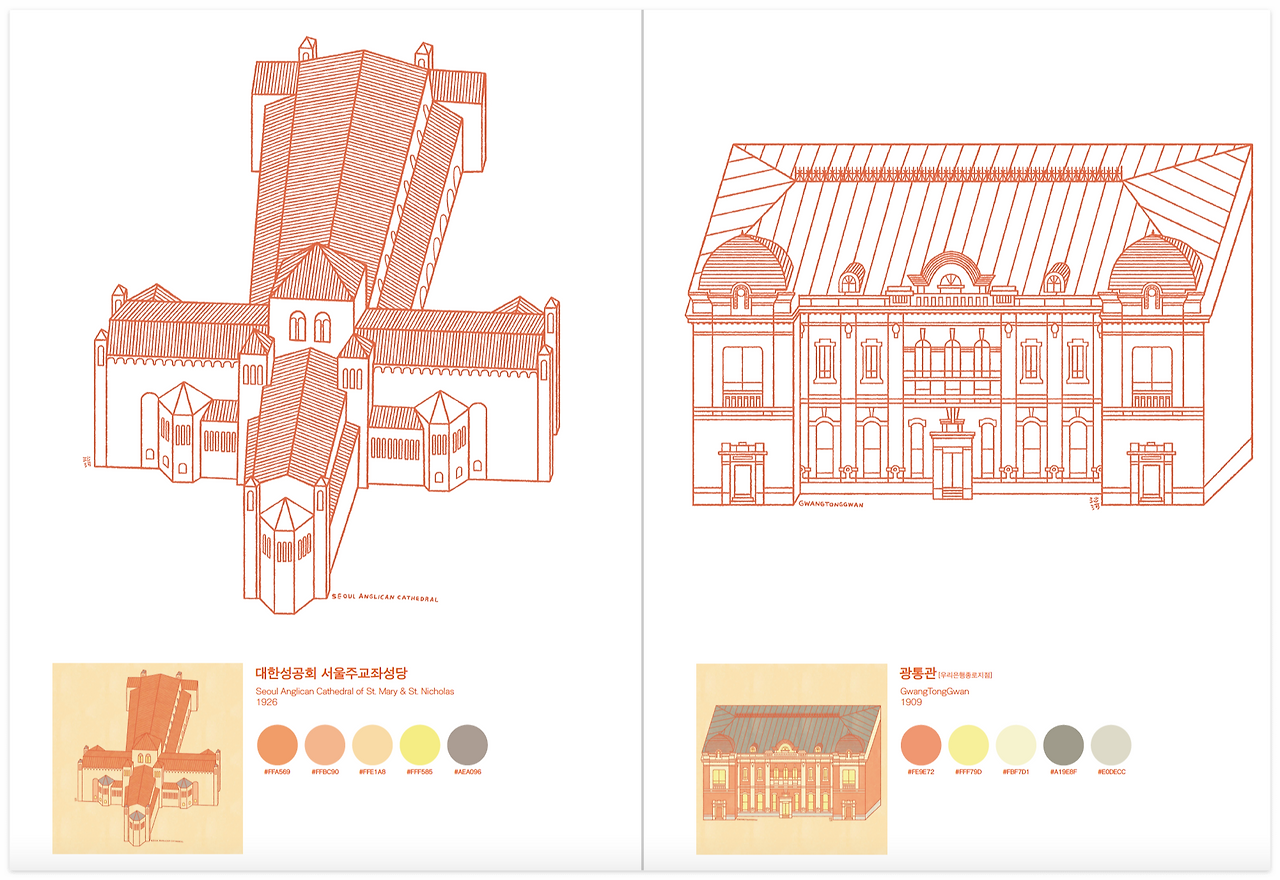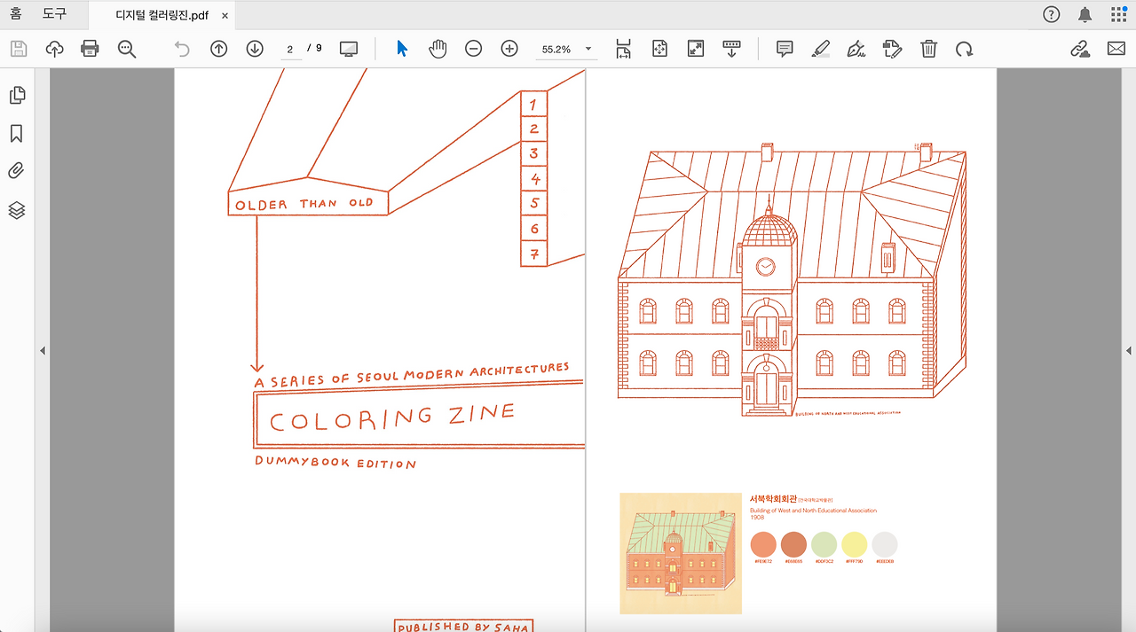 도안 선택 : 근대건축물 컬러링 시트 7종 + 표지