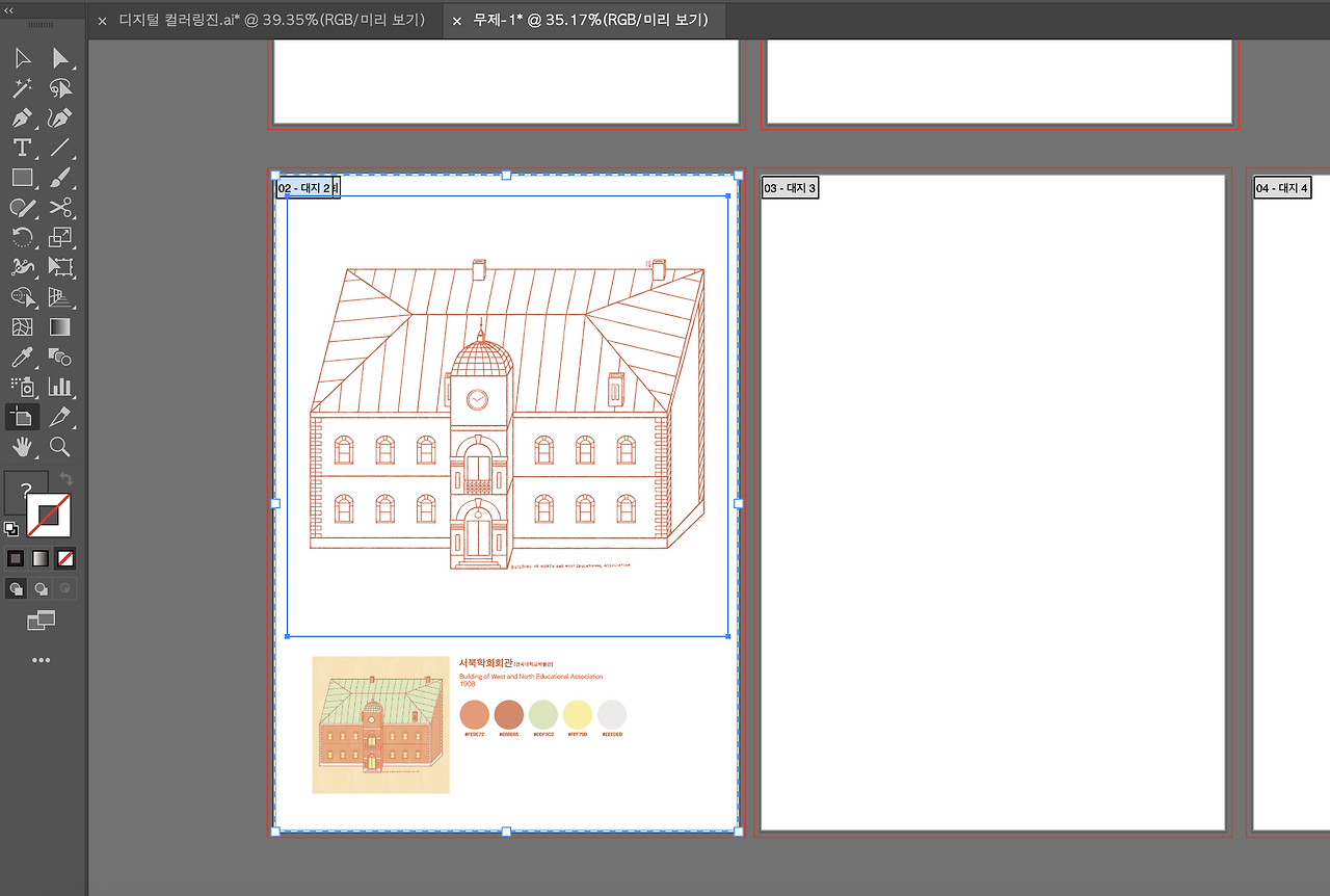 [pdf] 형식의 컬러링북을 만들기 위해서 어도비 일러스트레이터를 사용했다. 글이 거의 없고, 장수가 많지 않다면 굳이 인디자인을 사용하지 않아도 된다. 일러스트레이터는 한 번에 대지를 여러 장 만들어서 작업할 수 있어서 매우 효율적이다. 간단한 [pdf] 전자책은 뚝딱 만들어낼 수 있다.