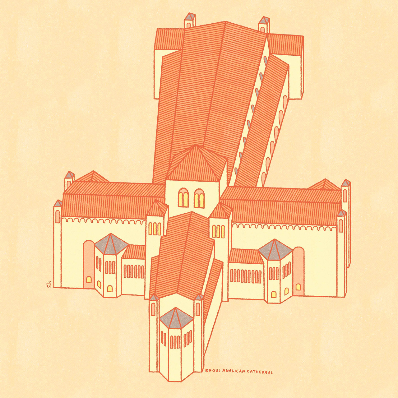 흔히 ‘성공회 서울대성당’이라 불리는 대한성공회 서울주교좌성당은 주황빛 지붕과 십자형 로마네스크 양식이 특징인 근대건축물입니다. 정동 터에서 작은 한옥 성당으로 시작했던 성공회는 제3대 트롤로프 주교가 부임하면서 1911년 대성당 건립을 추진하였고, 영국 건축가 아서 딕슨이 설계도를 완성하였습니다.