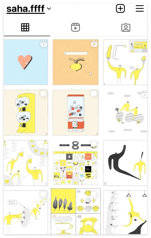 처음엔 그리고 싶은 게 너무 많았다. 캐릭터, 그림달력, 사물, 짧은 영상 등등... 사실 지금도 많긴 하다(웃음). 하지만 인스타그램 그림 계정을 잘 운영하기 위해서는 하나의 세부적인 분야를 정해서 꾸준히 올리는 것이 중요했다. 계정의 정체성과도 연관되기 때문이고, 무엇보다 피드가 일관성을 가져야 하기 때문이다.