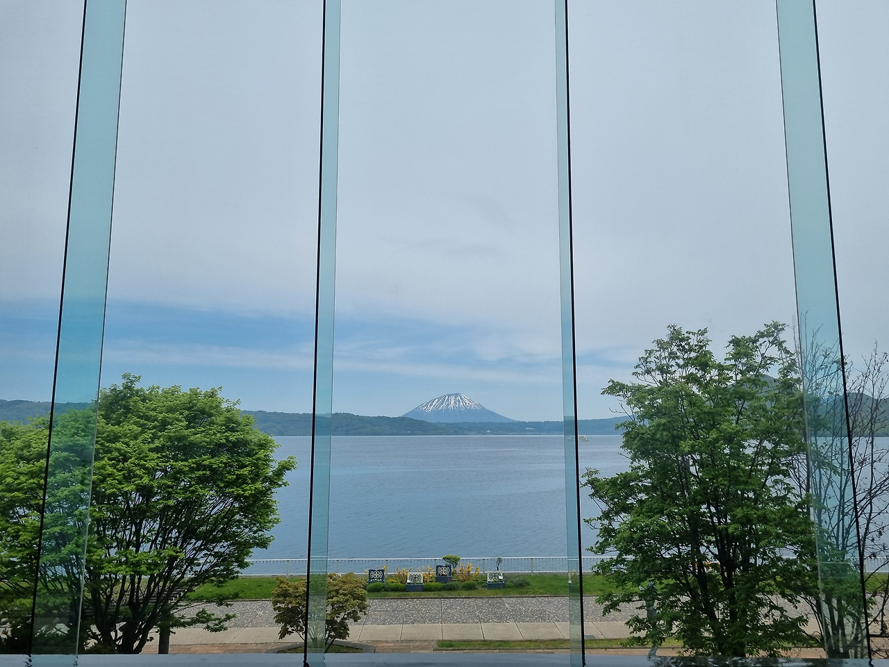 꽃피는 봄, 다시 찾은 도야. 저 멀리 직원이 달려온다. 버스에서 내려 노노카제 주차장으로 들어서니 미소 지으며 내 캐리어를 받아 들려고 내게 뛰어온다. 돈 받고 하는 일인데 어쩜 저리도 반갑게 손님을 맞이할 수 있을까?! 그녀의 투철한 직업의식이 느껴진다. 아니면 내가 별달리 직업의식이 없었는지도 모르겠다. 웃음 짓는 첫인상과 ‘곤니찌와’ 고운 첫마디는 ‘고급 호텔이라 다르긴 다르구나!’ 감탄하게 한다. 그리고 로비에 들어서니 파란 하늘과 맞닿은 거대한 도야호에 다시 한번 압도된다. 가로로 길게 병풍처럼 짜 맞춰진 커다란 유리창. 도야호수 넘어 요테이산을 웅장하게 담아낸다. 커다란 창이라 중간에 철제프레임이라도 쓸법한데 깔끔하게 유리들로만 창을 내어 자연스럽게 도야의 멋진 풍광을 드리고 있다.