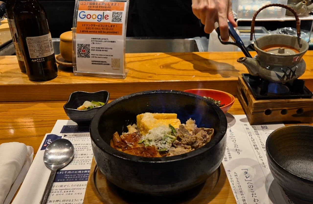 소고기를 곁들인 장어, 돌솥과 누룽지, 미니 화로에 주전자 그리고 먹기 직전 돌솥에서 펼쳐지는 불쇼까지!
