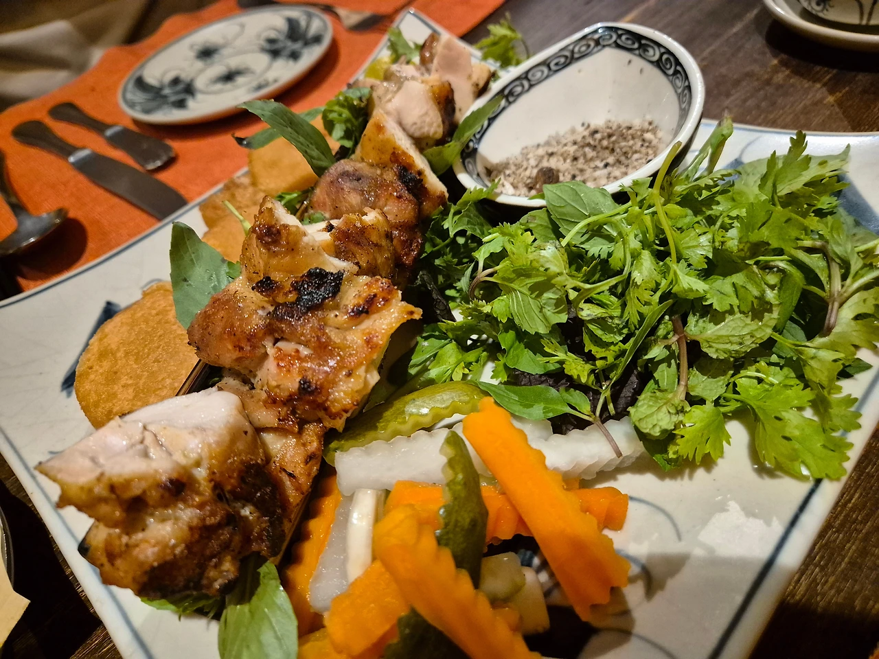 2번 먹은 메뉴. 소금에 찍어먹는 구운 치킨이라 모두 좋아했다.