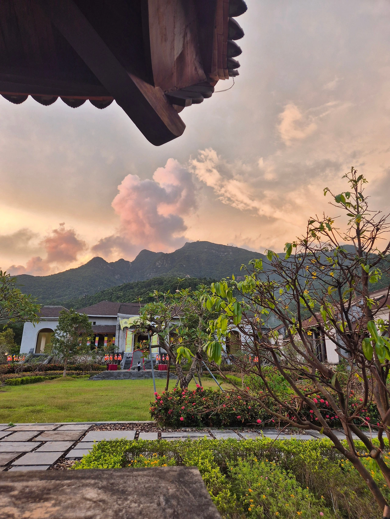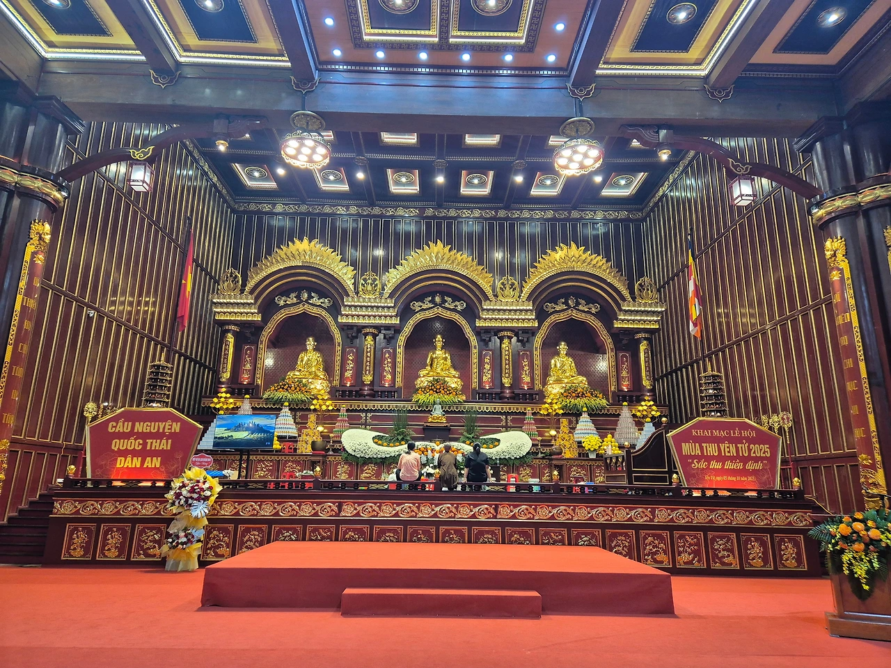 맨발로 긴 길을 지나 계단을 올라 CUNG TRÚC LÂM YÊN TỬ 에 당도했다.