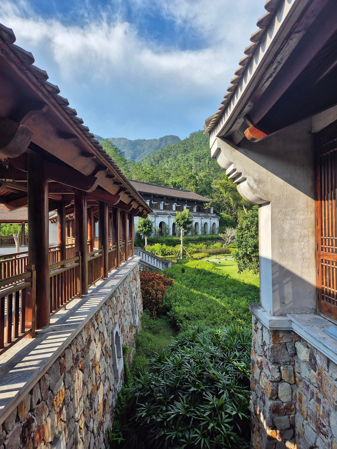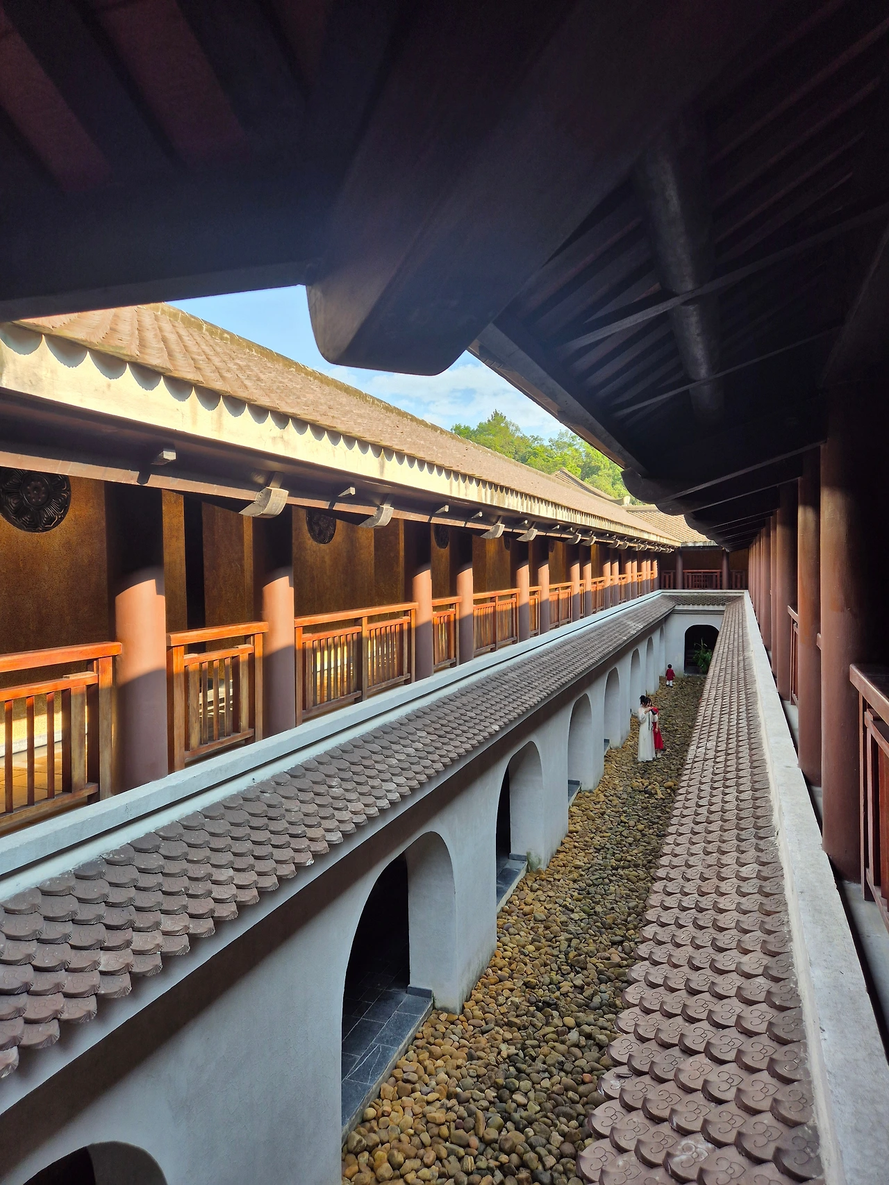 처마가 드리운 리조트 복도를 조용히 산책하듯 거닐며 차분해지는 내 마음이 좋았다.
