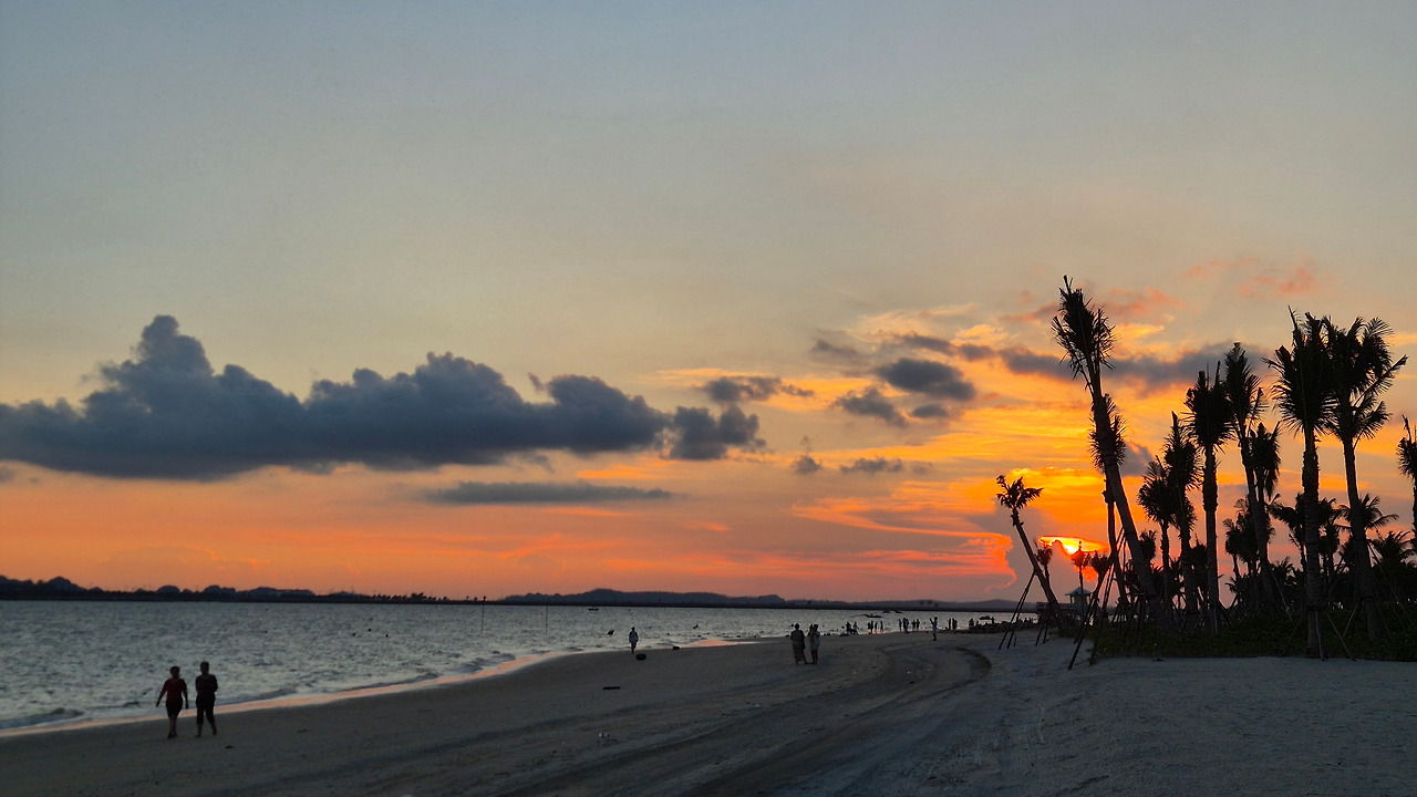* 붉은 노을을 깊게 드리운 해변가 산책, 노을 명상!
