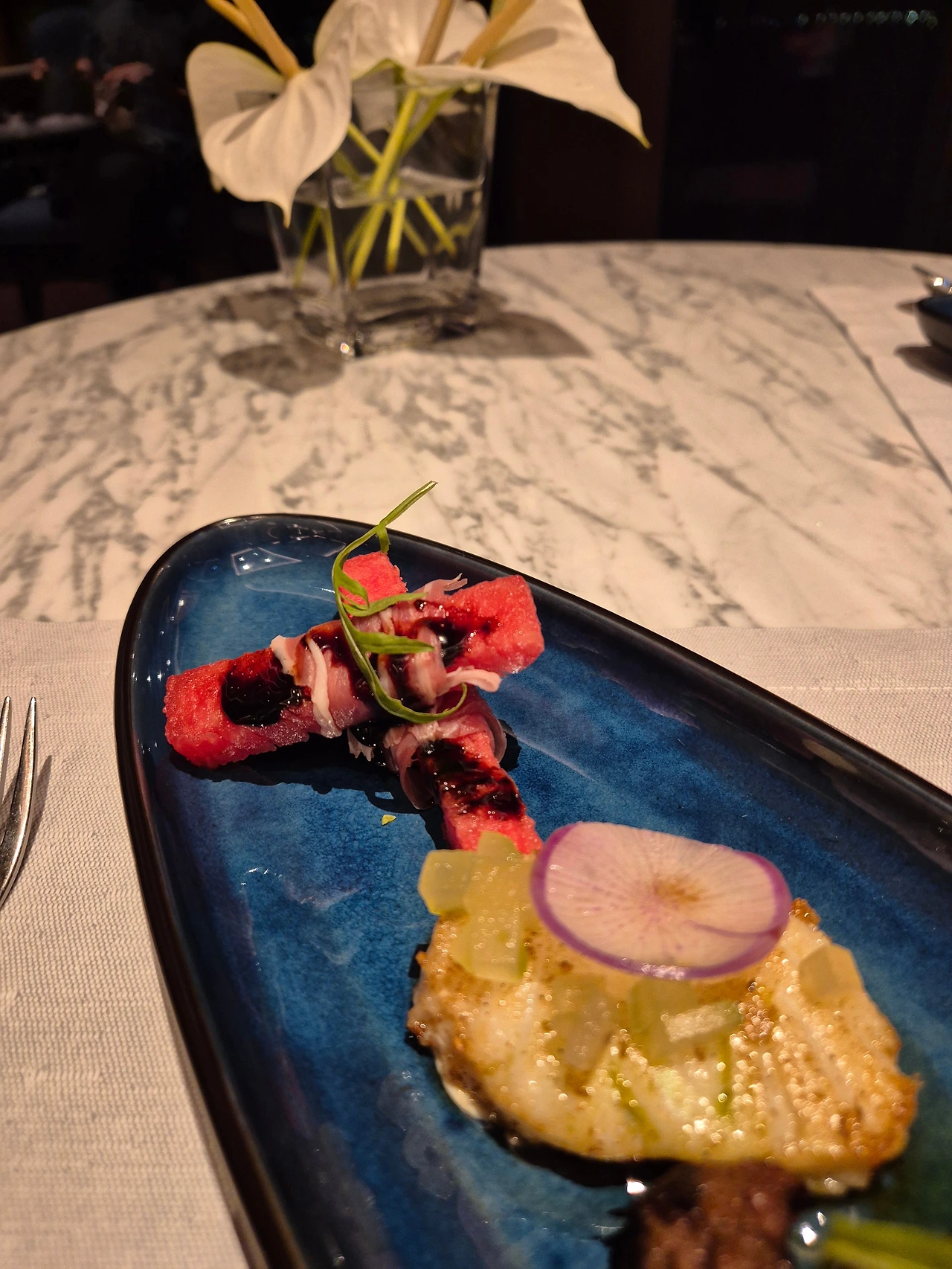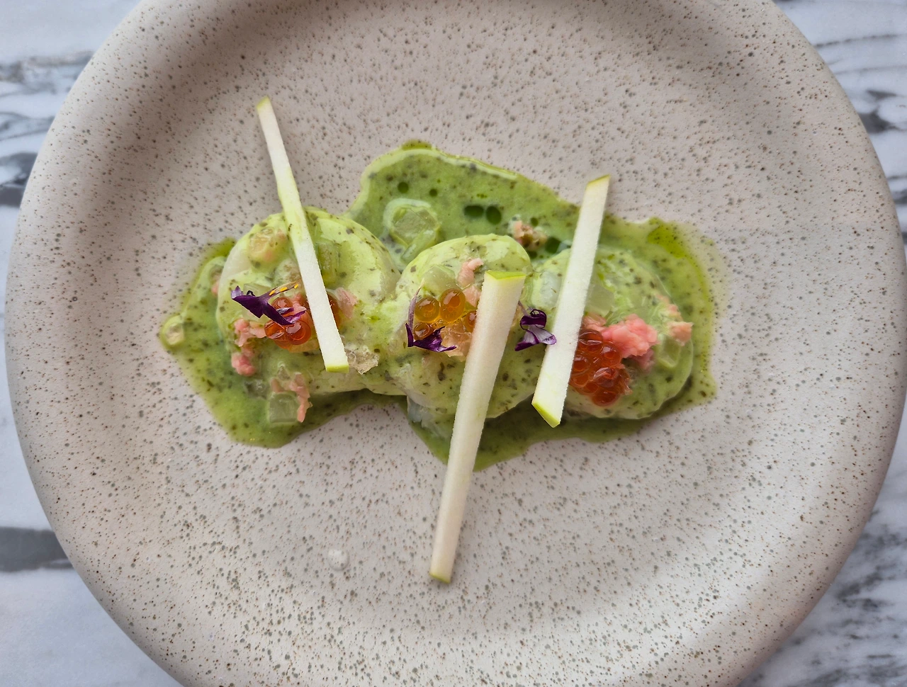 나는 여기에 아보카도 샐러드와 홋카이도 가리비 세비체를 더한다.