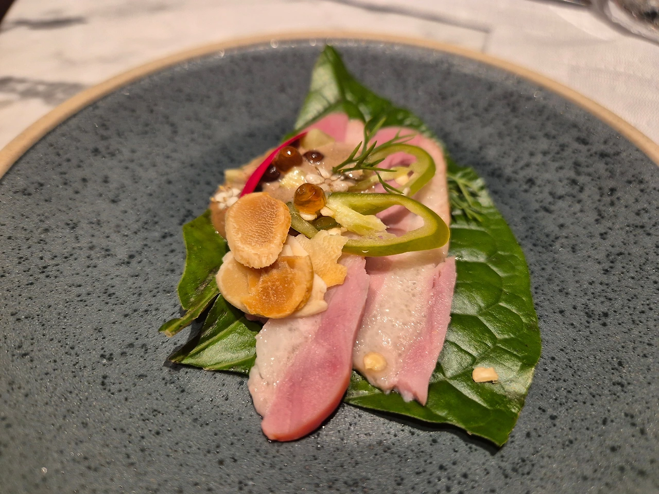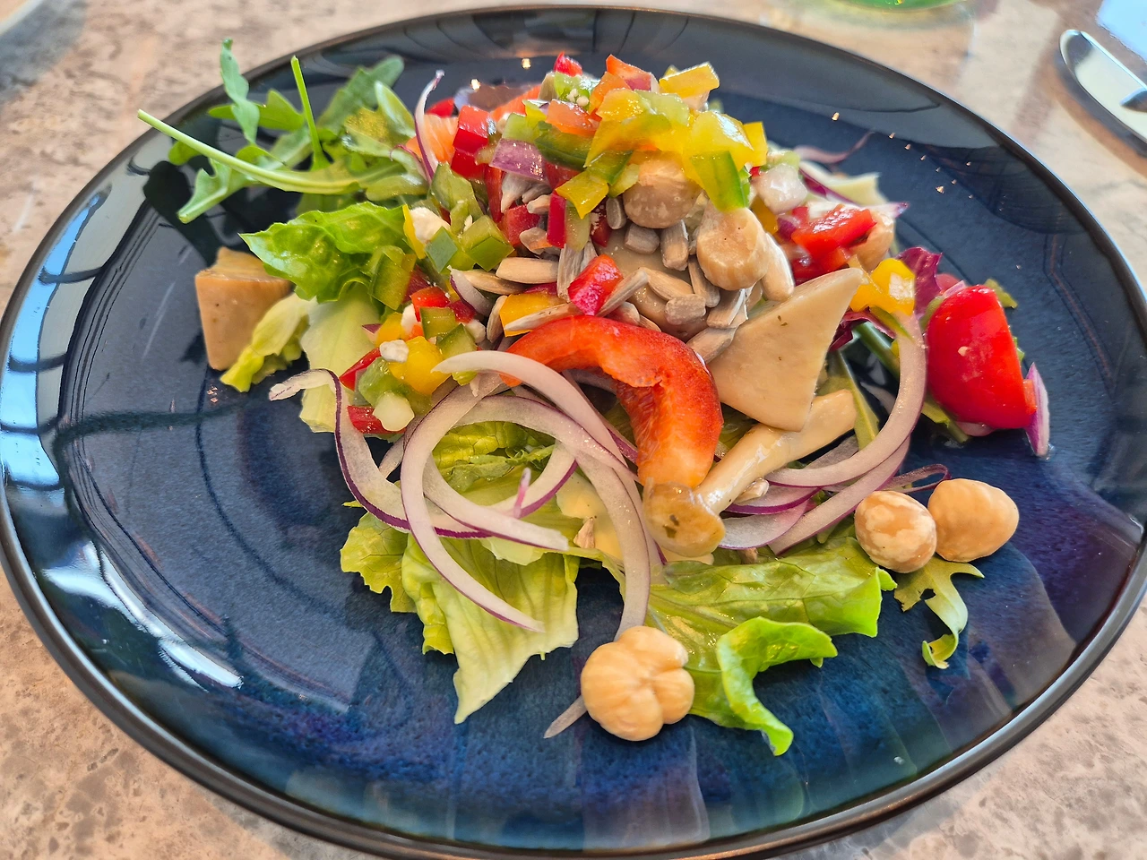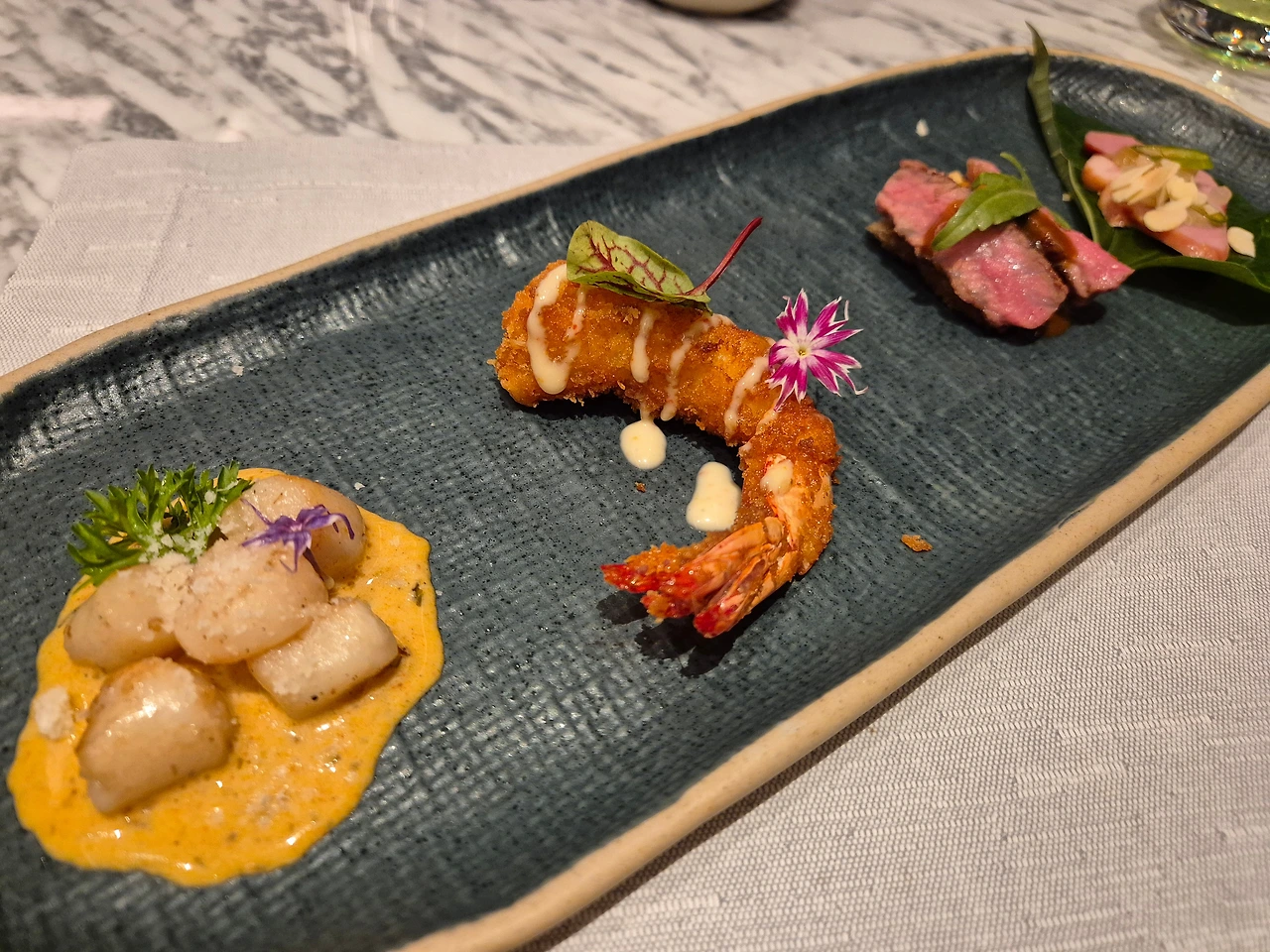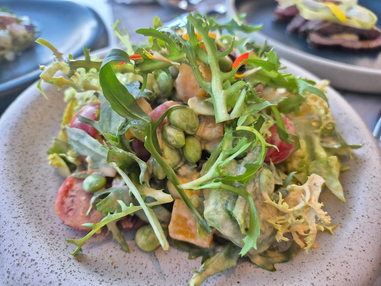 훈제 오리 샐러드, 새우 샐러드, 홋카이도 가리비 세비체(추천),