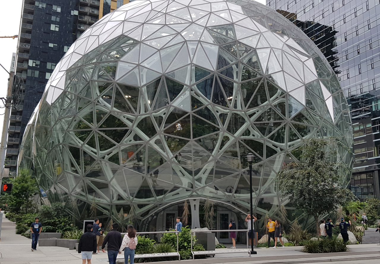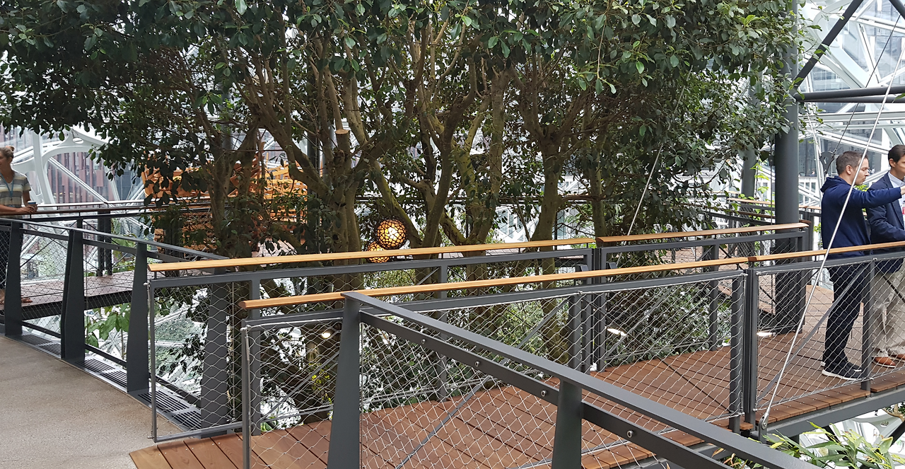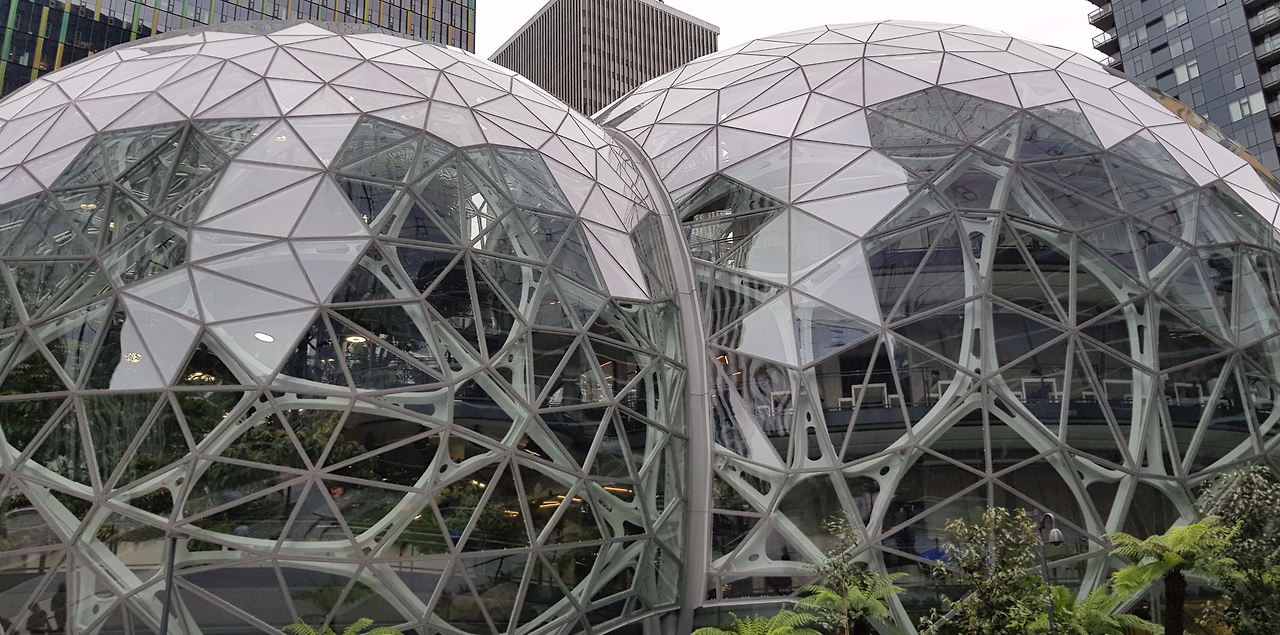 이쯤 되니 아마존에서도 이 도시에 자신들의 존재감을 극대화해 줄 만한 랜드마크를 세우고 싶었던 것 같다. 그들은 시애틀 시내 한가운데에 "The Spheres"라는 4층 규모의 실내 수목원을 세웠다. 직원들이 자유롭게 방문하여 숲 속에 온 듯한 느낌으로 편안하게 휴식도 취하고 다양한 팀워크를 할 수 있는 공간을 제공하기 위해서 세웠다고 한다. 아마존 직원들의 복지를 위해 만들어진 공간이기 때문에 외부인들은 아마존 직원과 함께가 아니면 입장할 수가 없는데, 다행히 함께 미팅한 아마존 직원 중에 안면이 있었던 한국분의 도움으로 이곳에 방문할 수 있게 되었다.