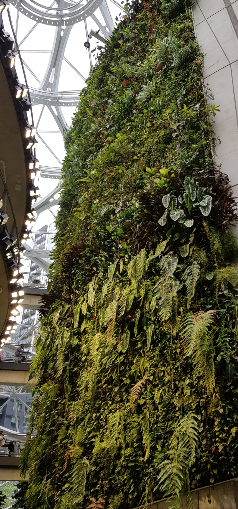 수목원 내부에는 세계 각지에서 온 4만 여 종의 식물들이 자리하고 있다. 특히, 건물 한쪽 벽 전체를 뒤덮은 green wall 은 그야말로 감탄을 자아내기에 충분하다. Green wall의 반대편으로는 각 층마다 테이블과 의자를 놓아두어서 사람들이 모여 앉아 이야기를 나눌 만한 공간도 마련해두었다. 이런 곳에 한 시간만 느긋하게 앉아있어도 엄청난 힐링이 될 것 같다. 노트북을 가지고 나와서 일을 하는 사람들의 수도 상당했다. 다만, 건물 전체가 유리로 되어 있어서 햇빛이 쨍쨍한 날에는 실내가 너무 더워지거나 눈이 부실 수도 있고, 식물들에게 주기적으로 물을 분사하기 때문에 실내가 매우 습하기 때문에 이런 환경에서 일을 하는 건... 글쎄... 잘 모르겠다. 하지만 일상에서의 작은 휴식이나 힐링을 위한 공간으로서는 아주 훌륭하다고 할 수 있겠다.