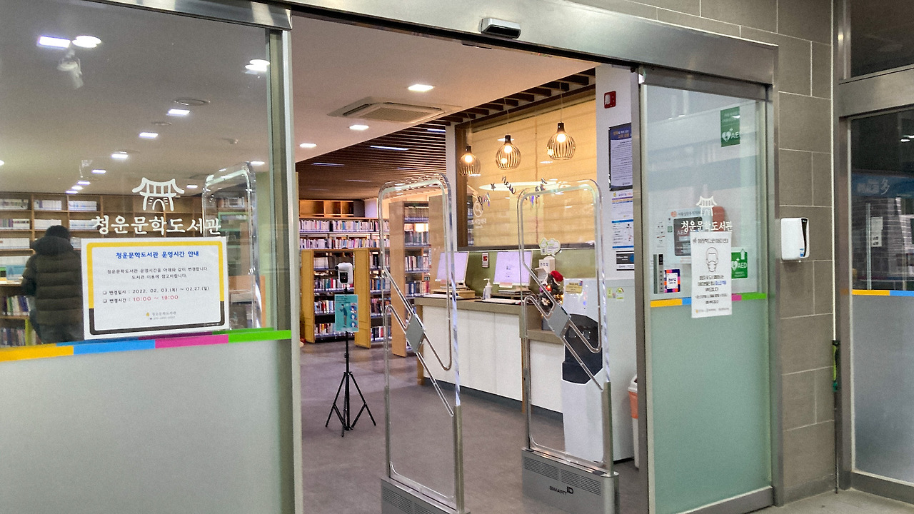 청운문학도서관은 1층 한옥 도서관과 지하 1층 일반 열람실로 구성되어 있다. 아쉽게도 한옥 도서관은 동절기에 열지 않아 들어갈 수 없었다. 지하 1층. 열람실에 있다가 한옥 도서관 마당을 걷는 걸로 만족했다.