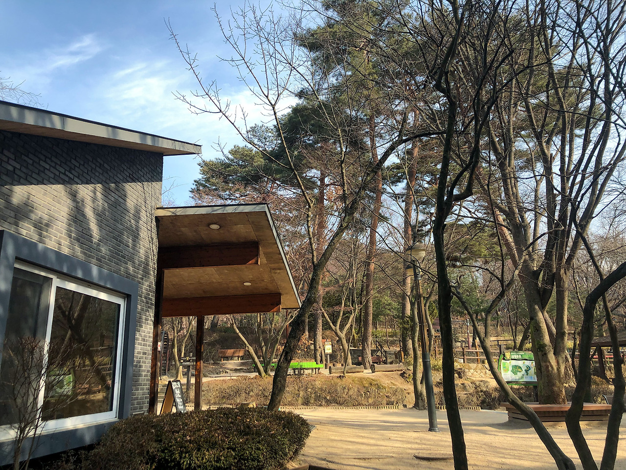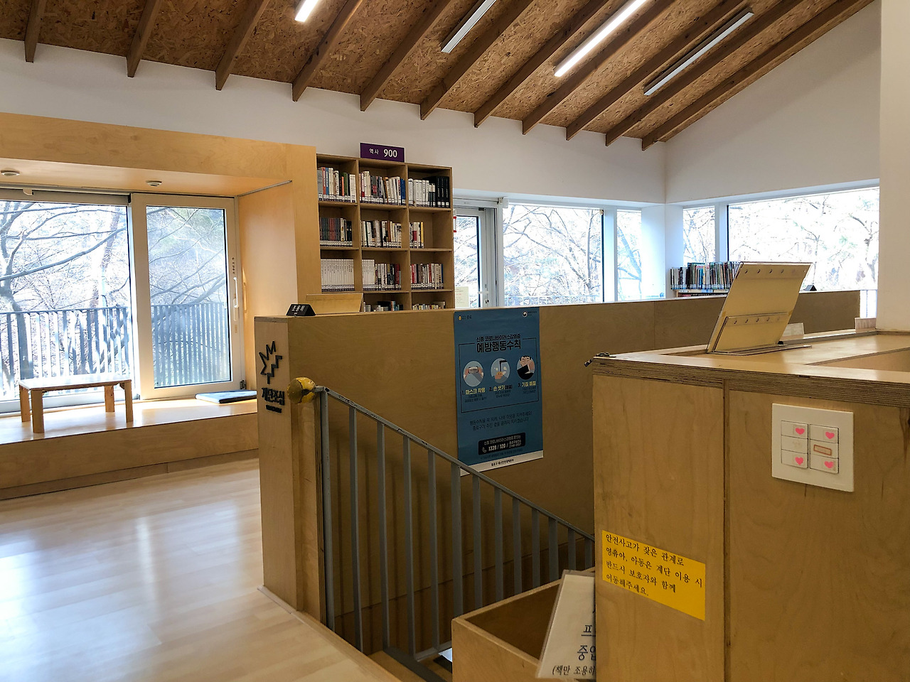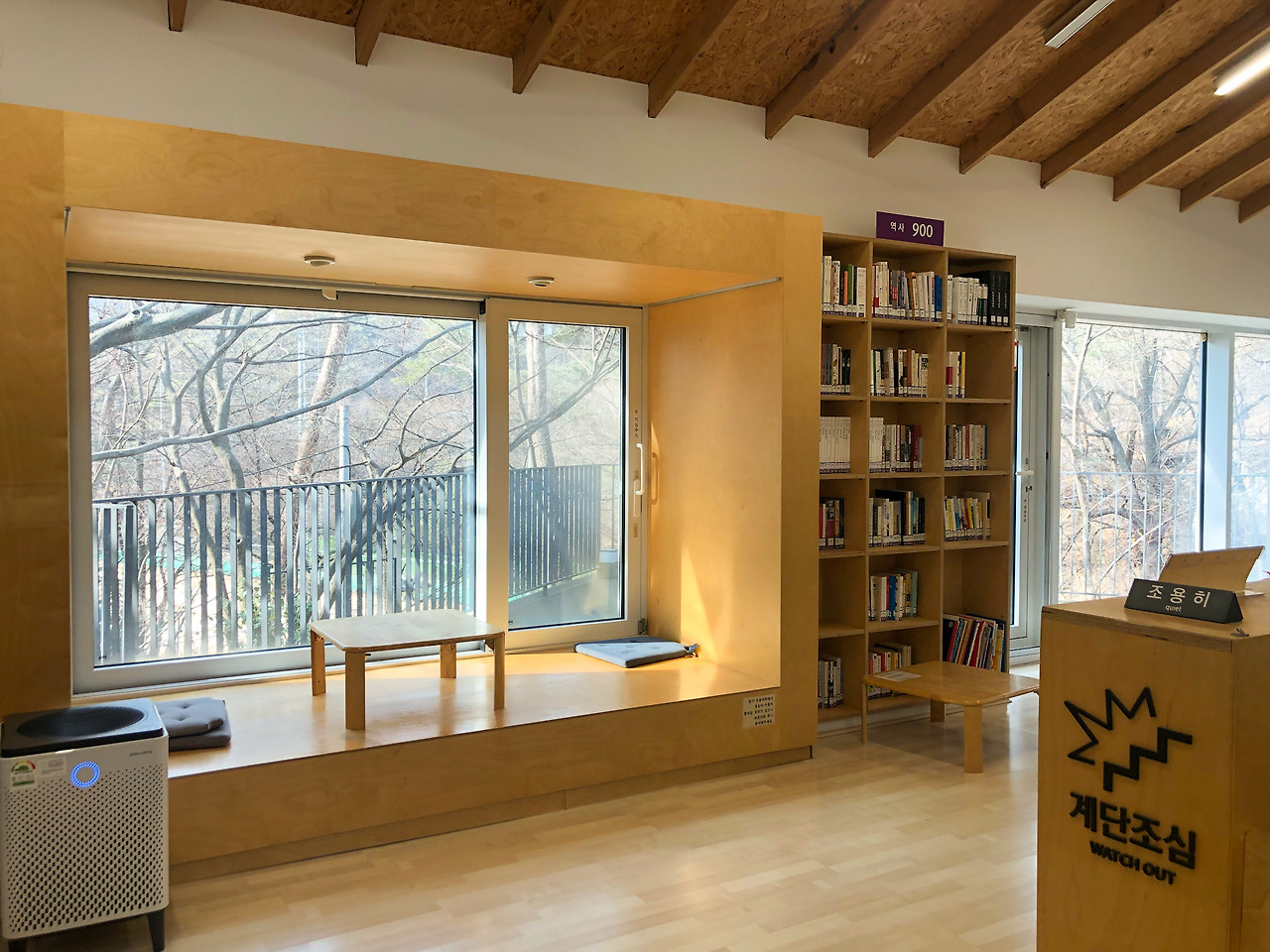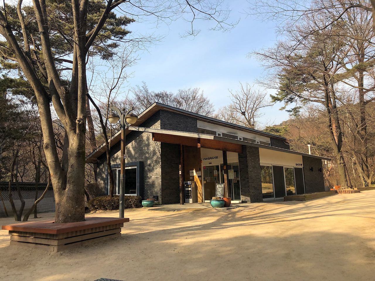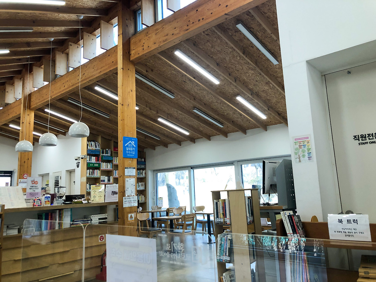 겨울에 가서 나무는 앙상했지만 공기가 맑았다. 주변 나무의 이파리가 울창한 모습을 상상하니 녹음에 둘러싼 숲속 도서관 모습이 머릿속에 그려졌다.