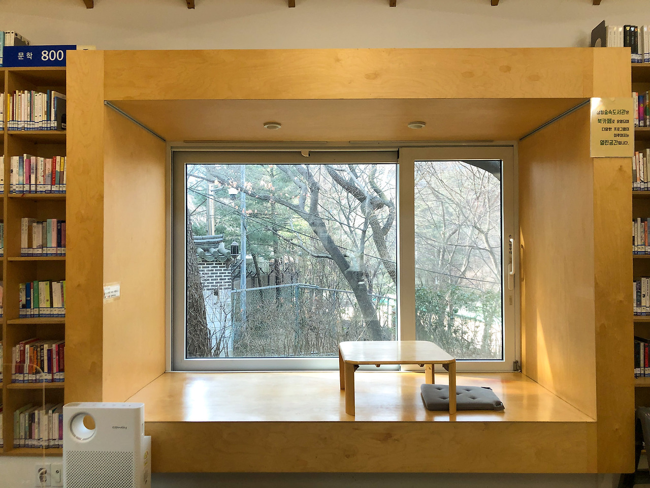 숲속 도서관은 북촌, 삼청 공원을 산책하다가 들리기 좋다. 책 속 세계에 빠졌다가 고개를 들어 창밖 숲을 보는 것도 좋다.