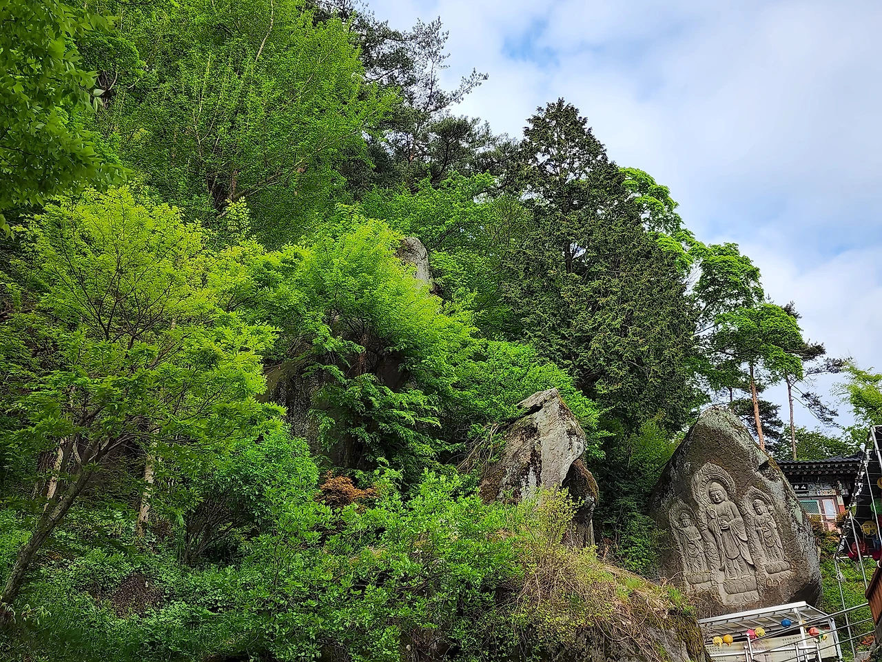 부석사의 첫인상은 화려했다. 풀또기라는 장미과 벚꽃 때문인데 부석사로 올라가는 길에 벚꽃잎이 하늘하늘 떨어졌다. 산은 새싹이 돋아서 새로 태어나고 연분홍 꽃잎은 눈처럼 떨어졌다. 사진으로 담아도 그 아름다움이 안 담아져서 기억 속에 넣었다.