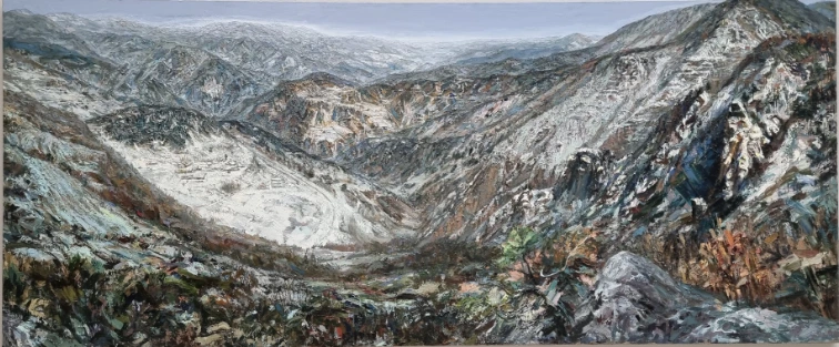 신혼의 아내와 갓 태어난 아들을 이끌고 제 발로 막장으로 들어가 광부가 되었던 화가는 폐광이 되어가는 태백을 떠나지 않는다. 그리고 1993년에 시작한 대작 <백두대간>을 11년 만에 끝낸다. 그는 “우리 한반도 산하의 능선 줄기에서 뻗쳐 나오는 내재적 힘”(황재형)을 형상화하기 위해 백두대간 산줄기와 능선을 수없이 눈으로 살피고 손으로 덧칠하여 <백두대간>을 완성한다.