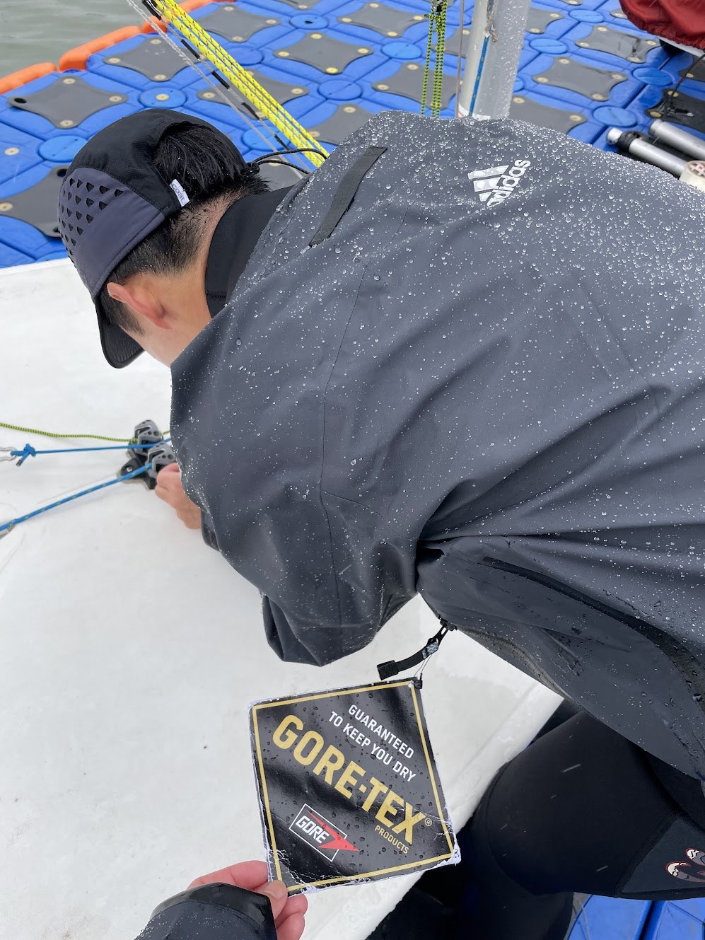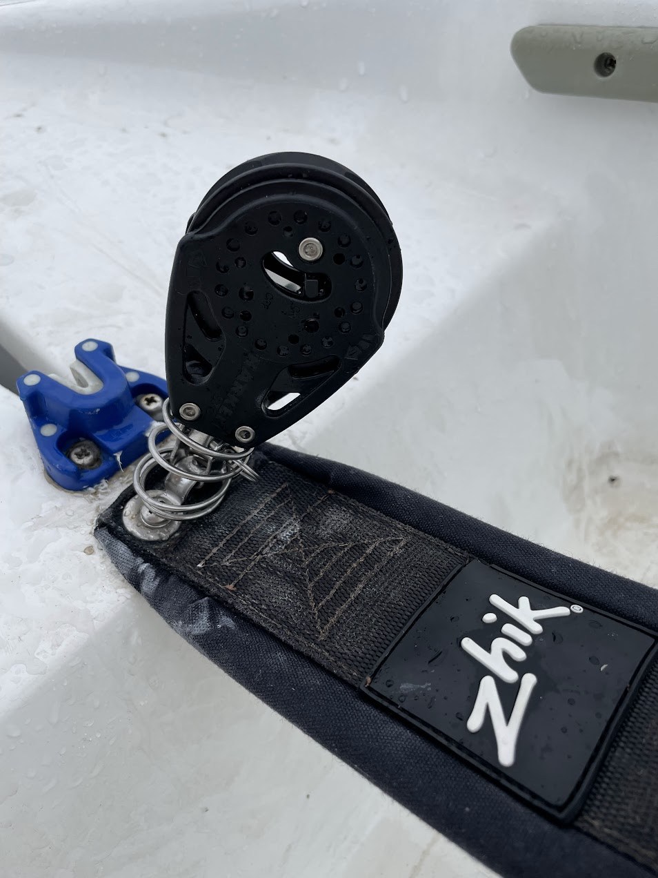 요트장엔 비가 추적추적 내리고 있었다. 나와 파트너는 우리를 지켜줄 아디다스 고어텍스 스모크를 입고 작업을 시작했다. 첫 번째, 트래블러 시트 교체하기. 트래블러시트는 새로 가져온 시트를 길이에 맞춰 자르고 속심을 꺼내고 기존 세팅되어 있던 모양대로 교체해서 달았다. 두 번째, 메인블록 달기. 메인블록은 저번에 박았던 EYE STRAP(눈처럼 구멍이 2개 나있는 요트부속)을 빼고 샤클을 끼워 다시 나사를 박았다. 그리고 그 위에 스프링과 메인블록을 연결했다. 세 번째, 센터보드 연결하기. 센터보드도 파트너가 구해준 후크에 연결했지만 세일링 해보니 숏코드 (센터보드를 연결하는 고무줄 재질의 시트)가 붐뱅에 걸렸다. 세일링 후 숏커드를 마스트 하단 블록에 연결하는 것으로 범장 방식을 변경했다. 이렇게 세일링을 하다 보면 항상 크고 작은 문제들이 발생하고 그 문제를 해결하는 방법을 찾아야 한다. 센터보드의 경우 생각해 간 방법이 100점이 아니었고, 그럼 다시 100점으로 만들기 위해 계획을 수정하고 가능한 바로 실행해 본다. 이게 너무 재미있다.