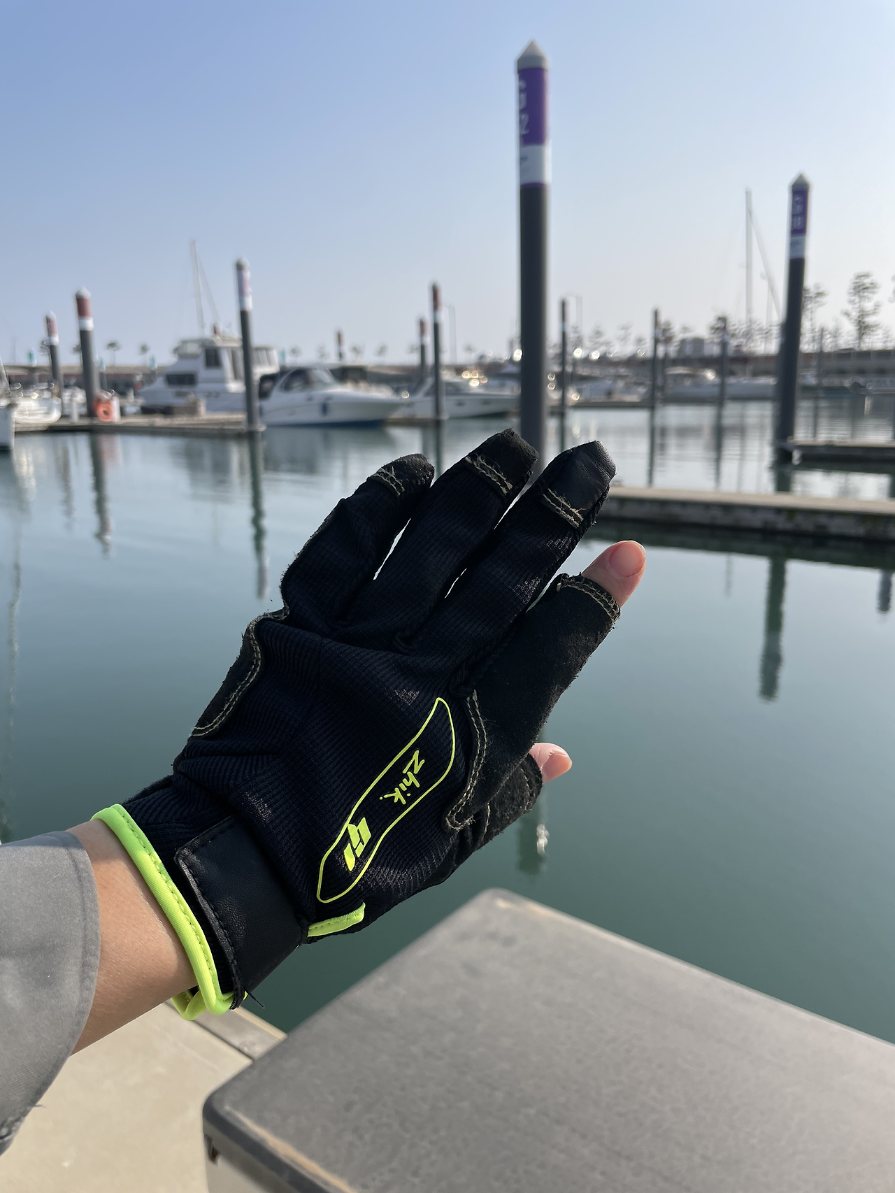 세일링 장갑 (작업의 용이성을 위해 엄지 검지 끝이 잘려나가 있는 것이 포인트)