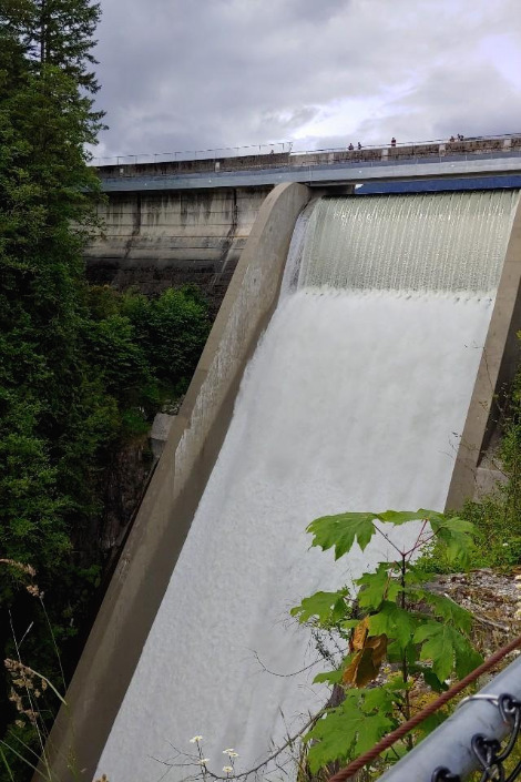 카메라에 담기지 않을 만큼 댐은 컸다. 점심식사가 마무리될 무렵, 현주 씨는 클리브랜드 댐(Cleveland Dam) 산책을 제안했다. 집에서 자동차로 10분 거리에 있는 클리브랜드 댐은 밴쿠버의 관광 명소 중 하나다. 현주 씨는 우리 가족이 클리브랜드 댐을 가본 적 없다는 것에 놀라워했다. 밴쿠버에 와서 내내 집에만 있었던 우리가 안타까웠는지, 현주 씨는 자신의 8인용 SUV에 우리 가족을 태웠다.