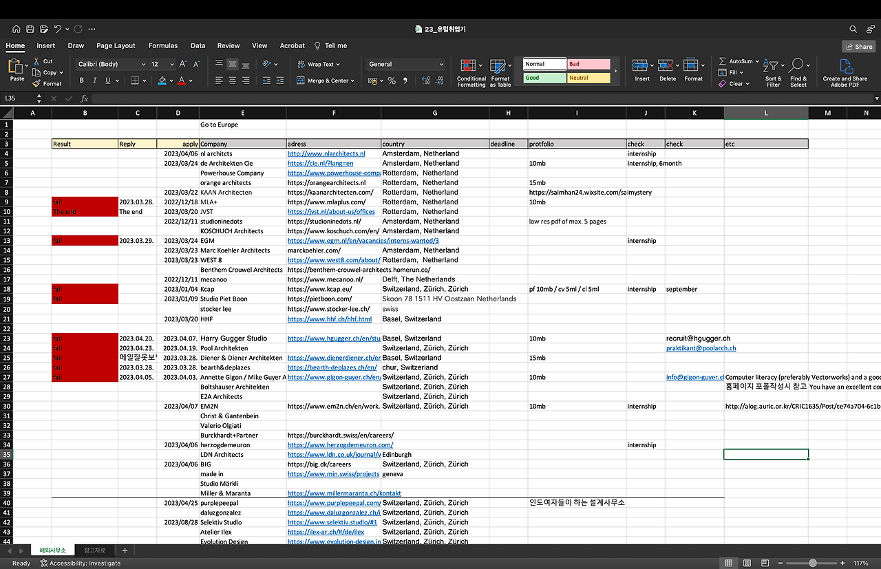 처음엔 네덜란드로 가고 싶어 네덜란드 회사 몇 곳에 어플라이를 했는데 일부는 미안하다는 답장을 받았고, 일부는 답이 오지 않았다. (차라리 잘된거라 믿는다)