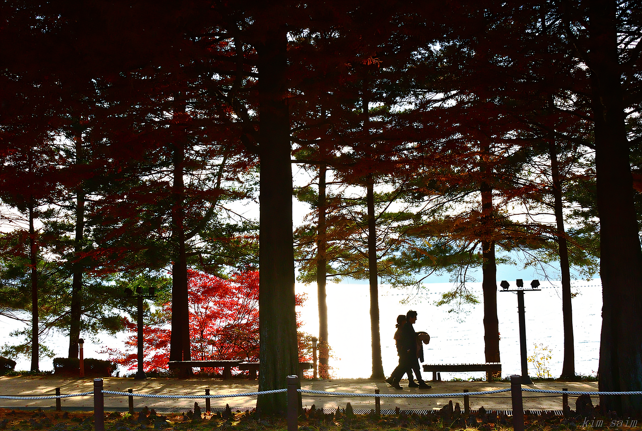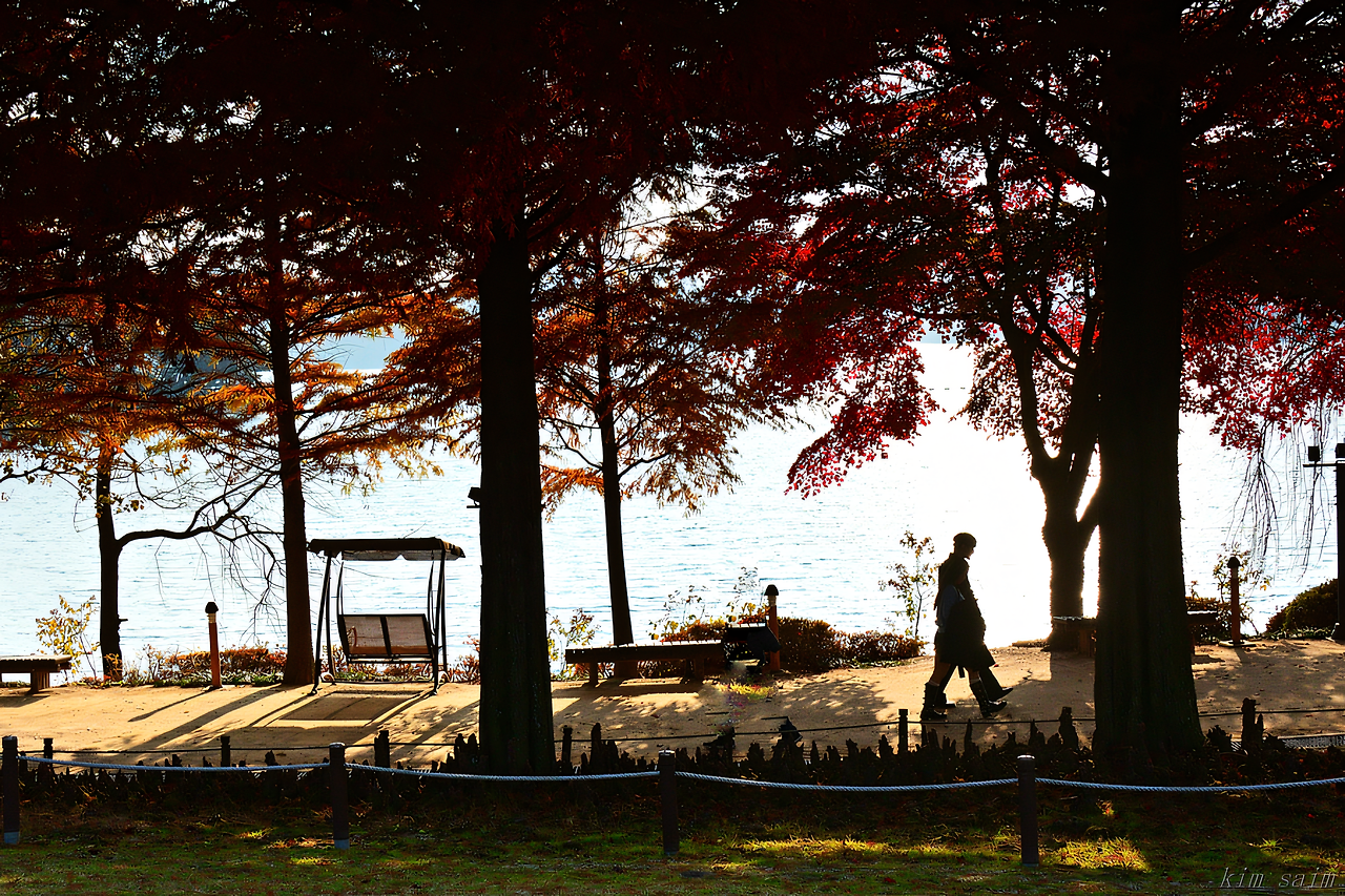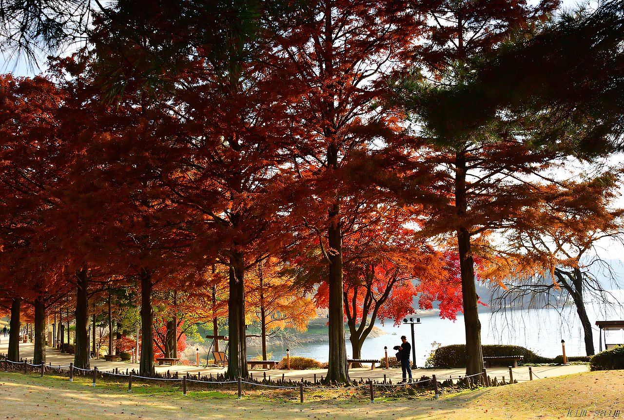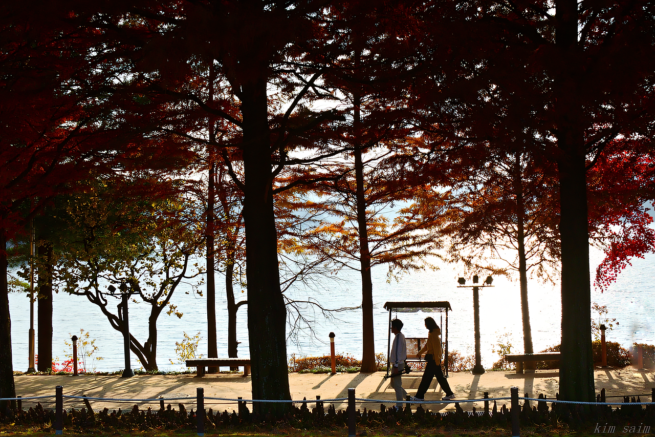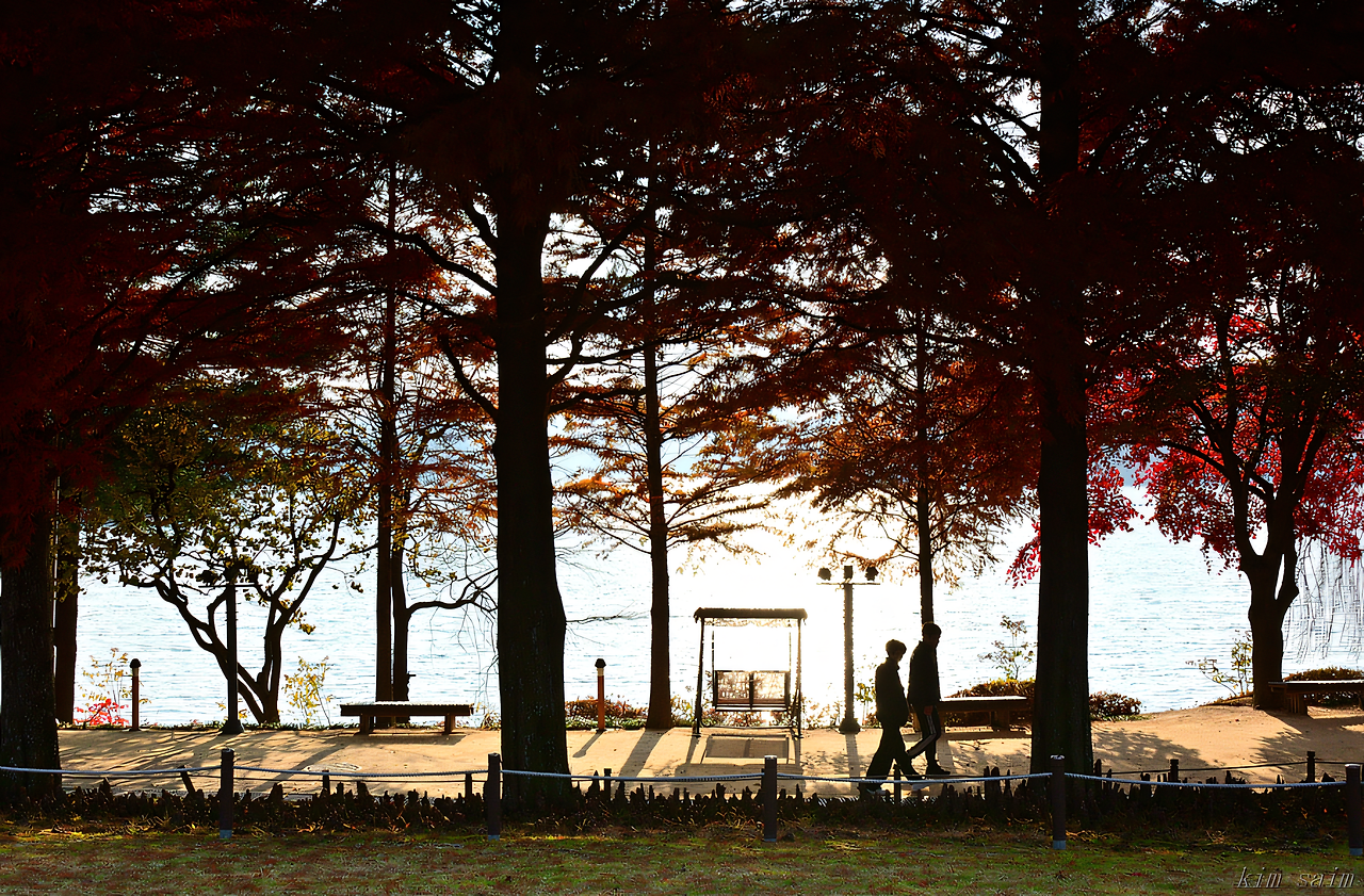 갈빛으로 익은 나무 사이로