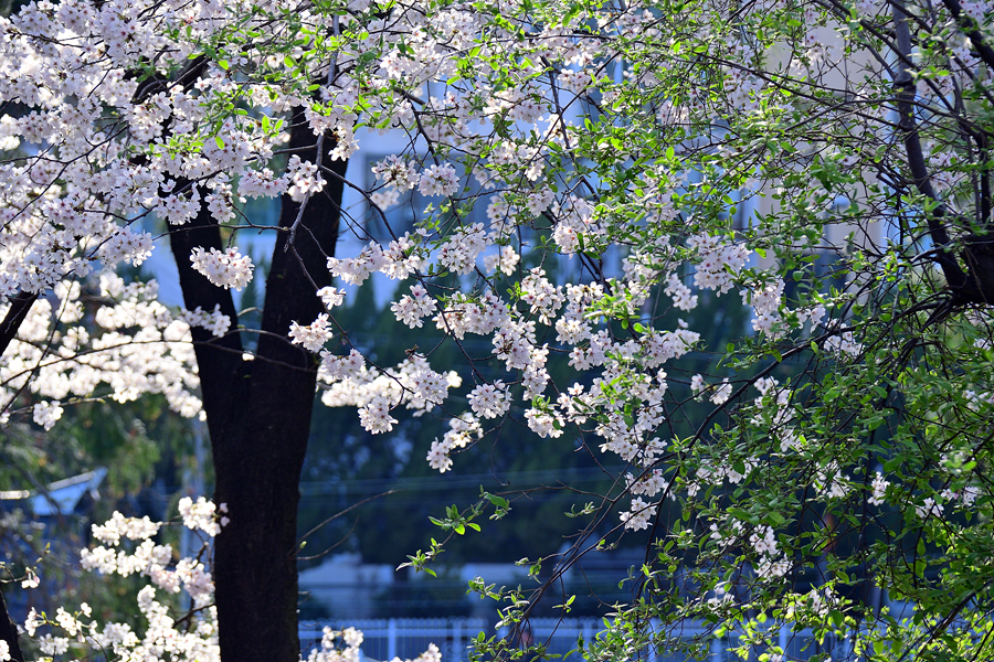 분홍 벚꽃송이가 바람결에 나풀거리고,