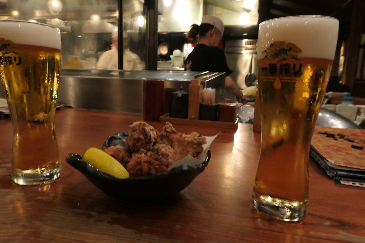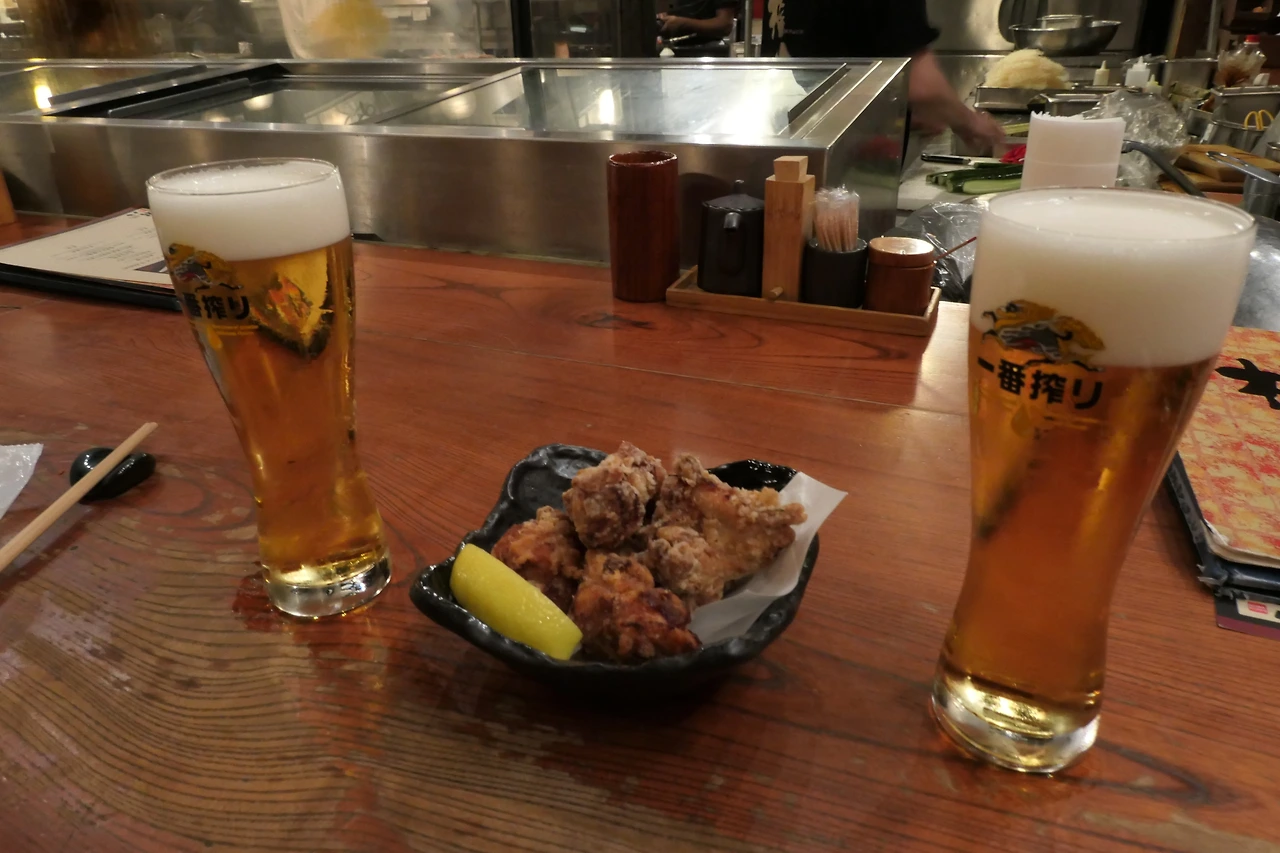 메뉴를 보니 우리가 좋아하는 꼬치들이 있었다. 가라아게랑 꼬치를 시켰다.