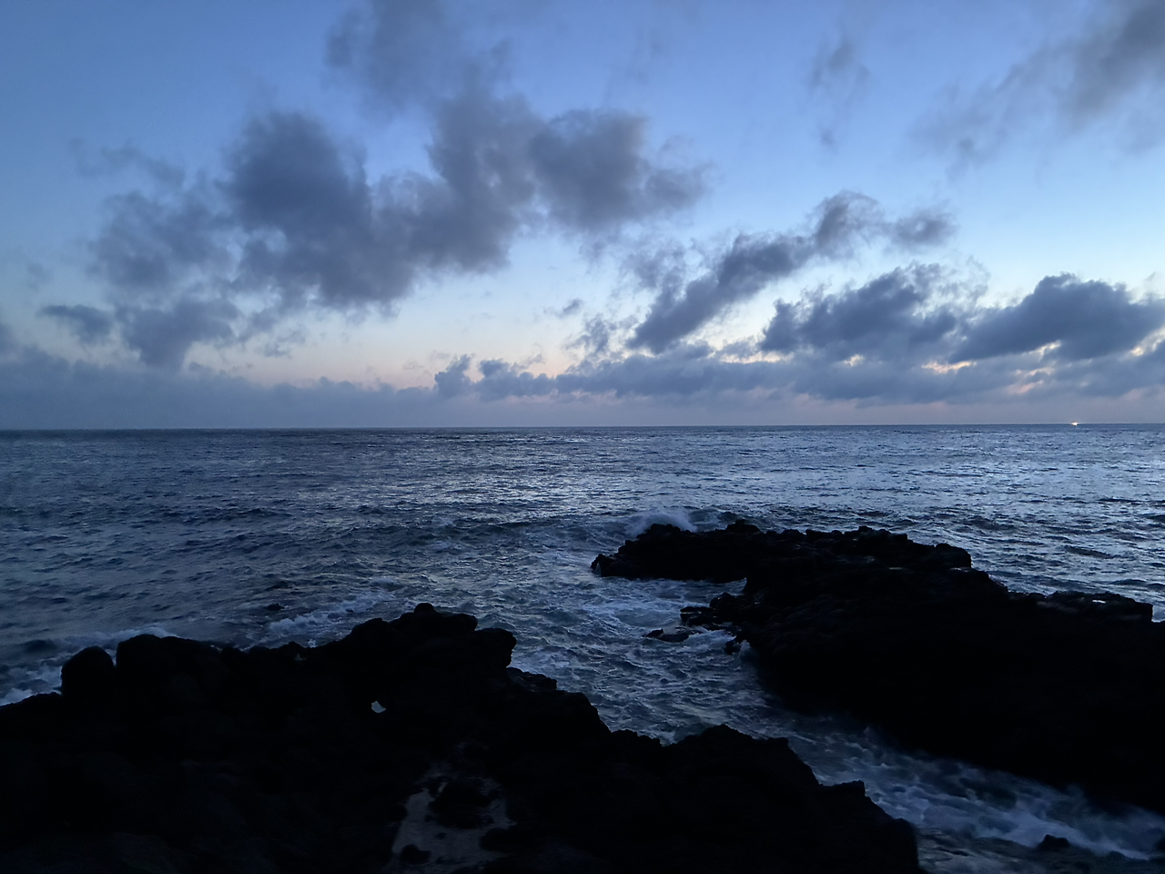 1~2시간 가량이 지나자 바다가 해를 삼켰고 하늘도 곧 캄캄해졌다.