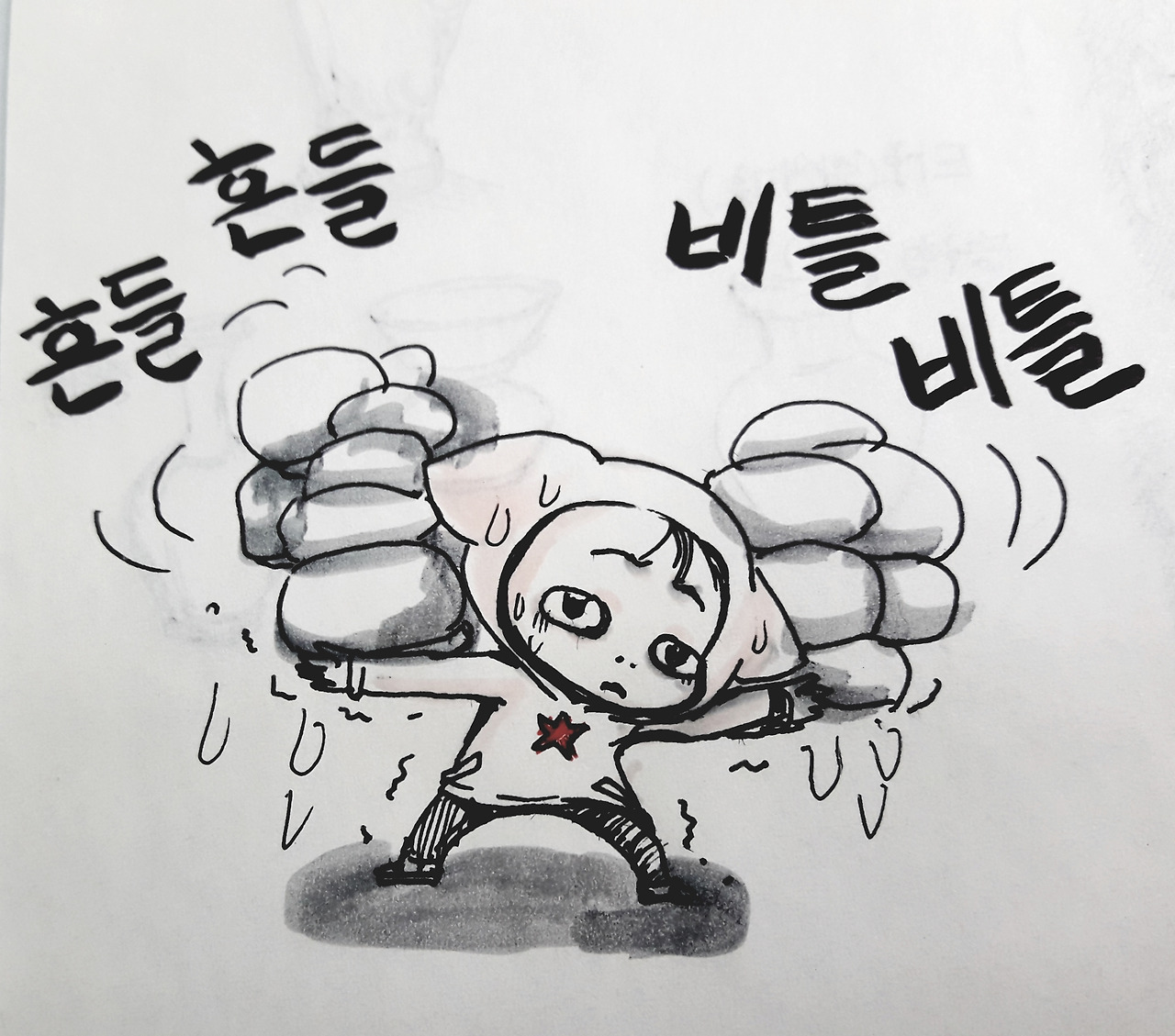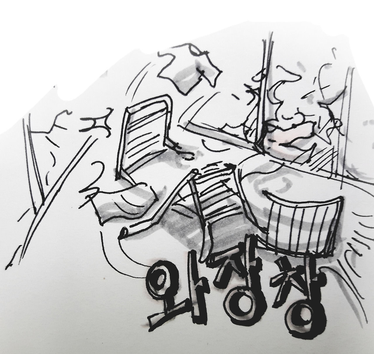 집안 한 켠의 신문지 위에 걸터 서야 할 때도 있었다. 때때로 옷이나 걸레 더미를 밟고 버티기도 해야 했다.