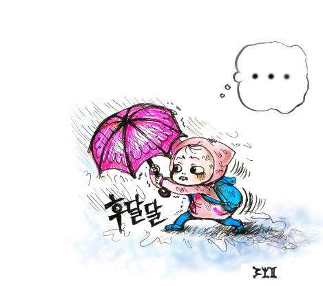 그래서 당연히 빨강인 줄 알았는데, 깜장 우산이었구나.