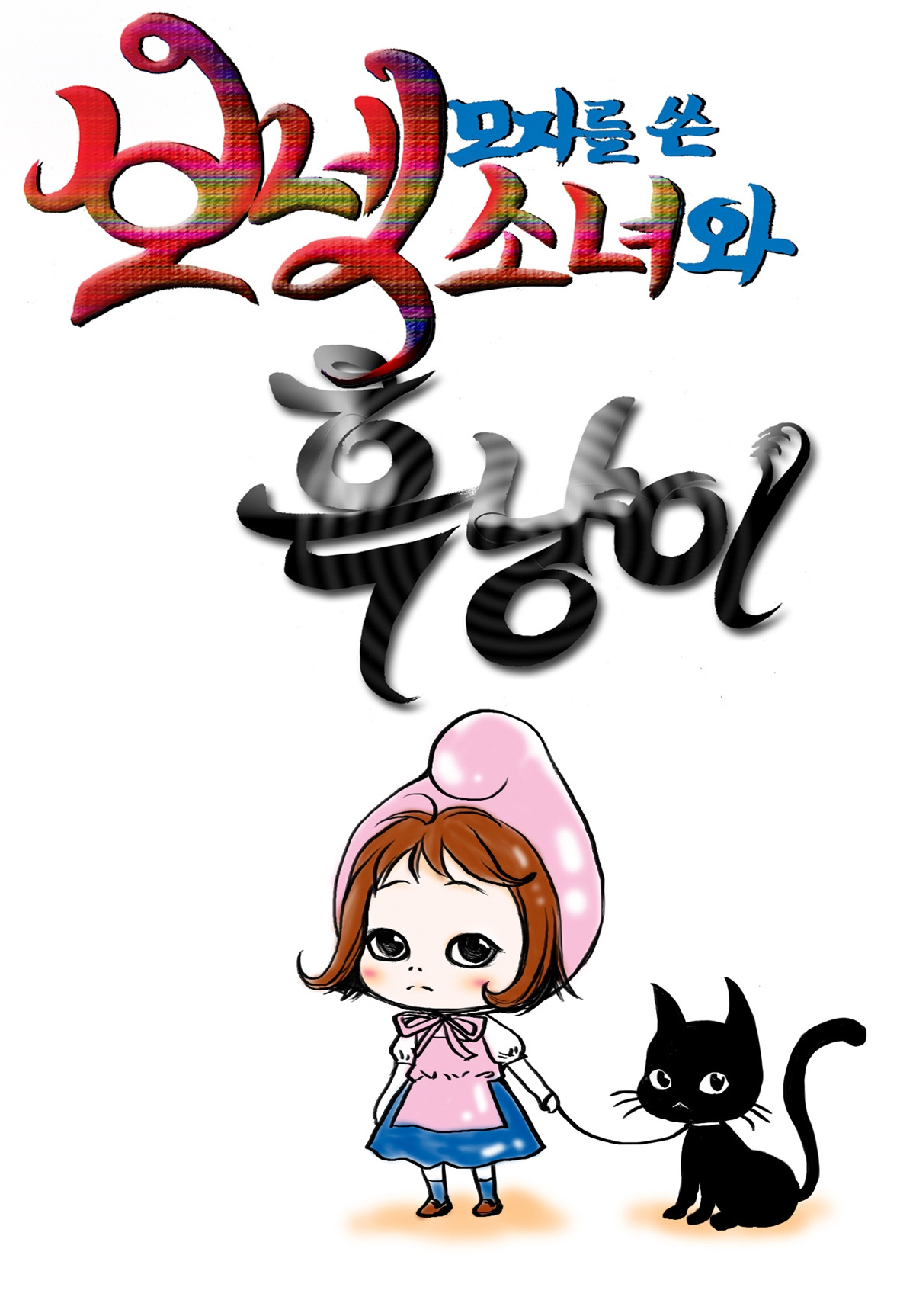 보넷 모자를 쓴 소녀와 시크한 검은 고양이의
