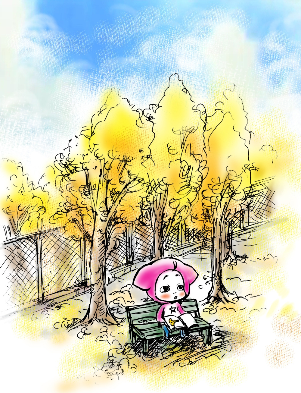 벤치에도 발밑에도 노란 물이 가득해졌다.