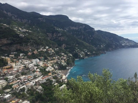 전망대에서 아름다운 포지타노를 배경으로 사진을 찍었다.