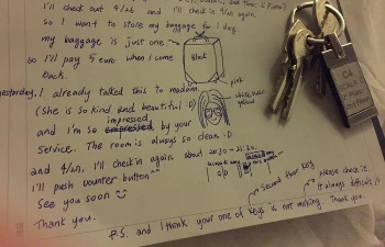 혹시 커뮤니케이션에 착오가 생길까 봐, 캐리어 위에 안 되는 영어로 메모도 남겨두었다.