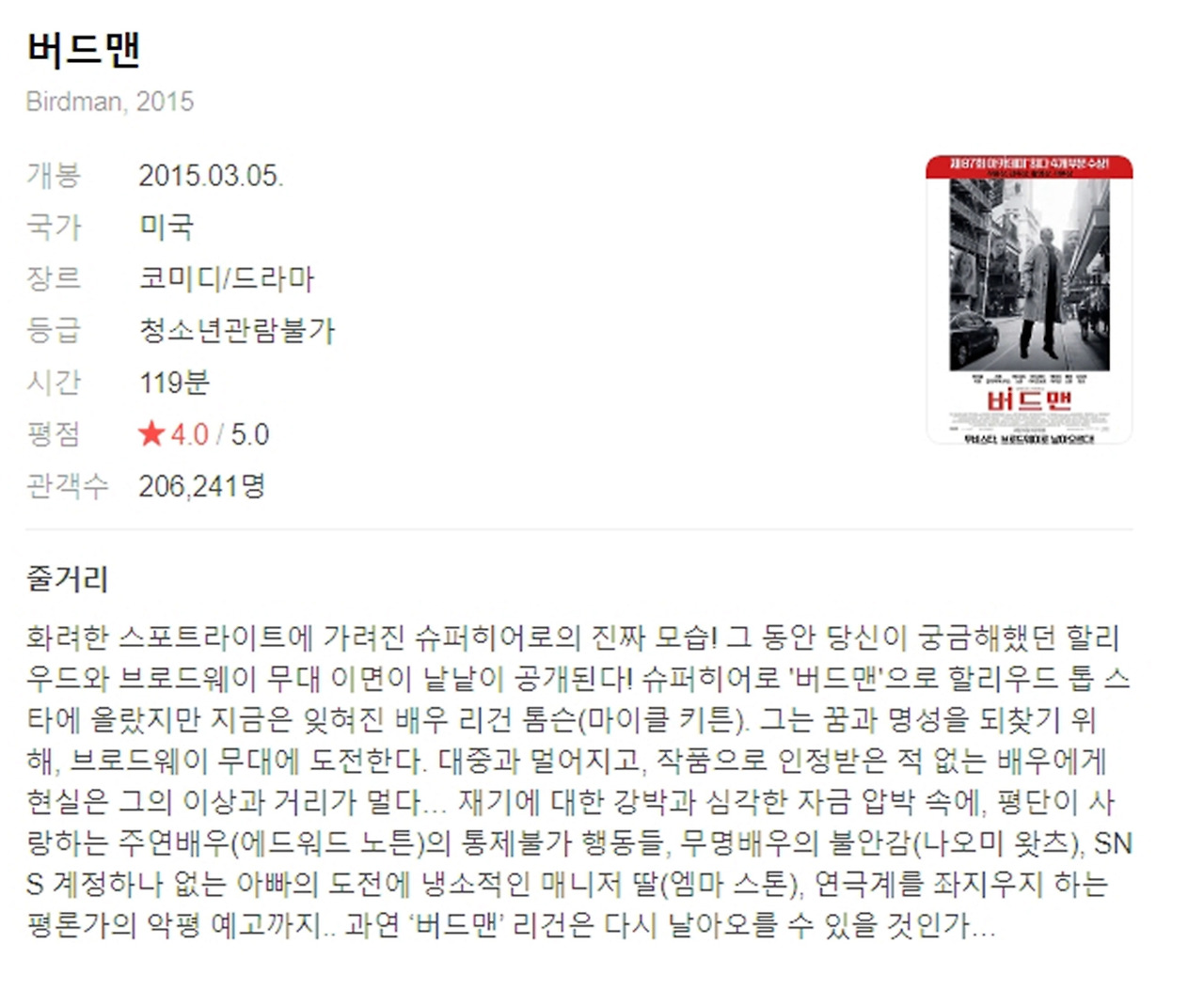 현실과 이상의 괴리에서 괴로운 경오일주들에게 알레한드로 곤잘레스 이냐리투 감독의 <버드맨>을 추천하며 글을 마친다.