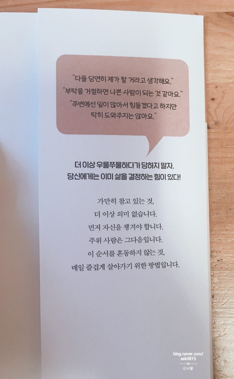저자에 의하면 내가 거절을 하지 않고 양보한다고 해서 상황이 항상 괜찮으면 다행인데 그것도 아니라는 것이다.
