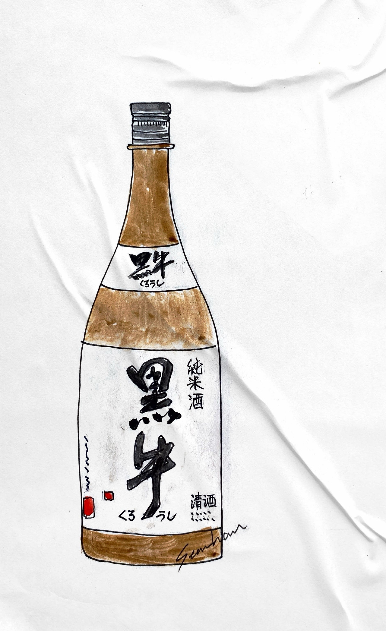 라벨명이 흑우란다. 사케랑은 어울리지 않는 네이밍으로 독특하다는 생각이 들었다. 물론 네이밍에는 깊은 뜻이 있을 거라 생각해서 찾아보니 나테양조장이 있는 하이난시 쿠로에(海南市黒江)의 명승에서 유래되었고 이 땅은 아름다운 포구로 검은 소와 같은 바위(黒牛潟)가 있어 그것을 보고 네이밍 되었다고 한다. 그래도 검은 소는 쫌...아니지 않나